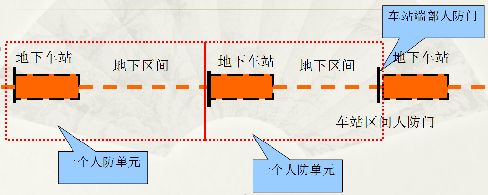 人防工程是地铁建设的重要组成部分。地下车站、换乘站(包括换乘通道)、区间隧道均按甲类人防工程设防,抗核武器抗力级别6级,抗常规武器抗力级别6级或5级,防化级别均为丁级。
