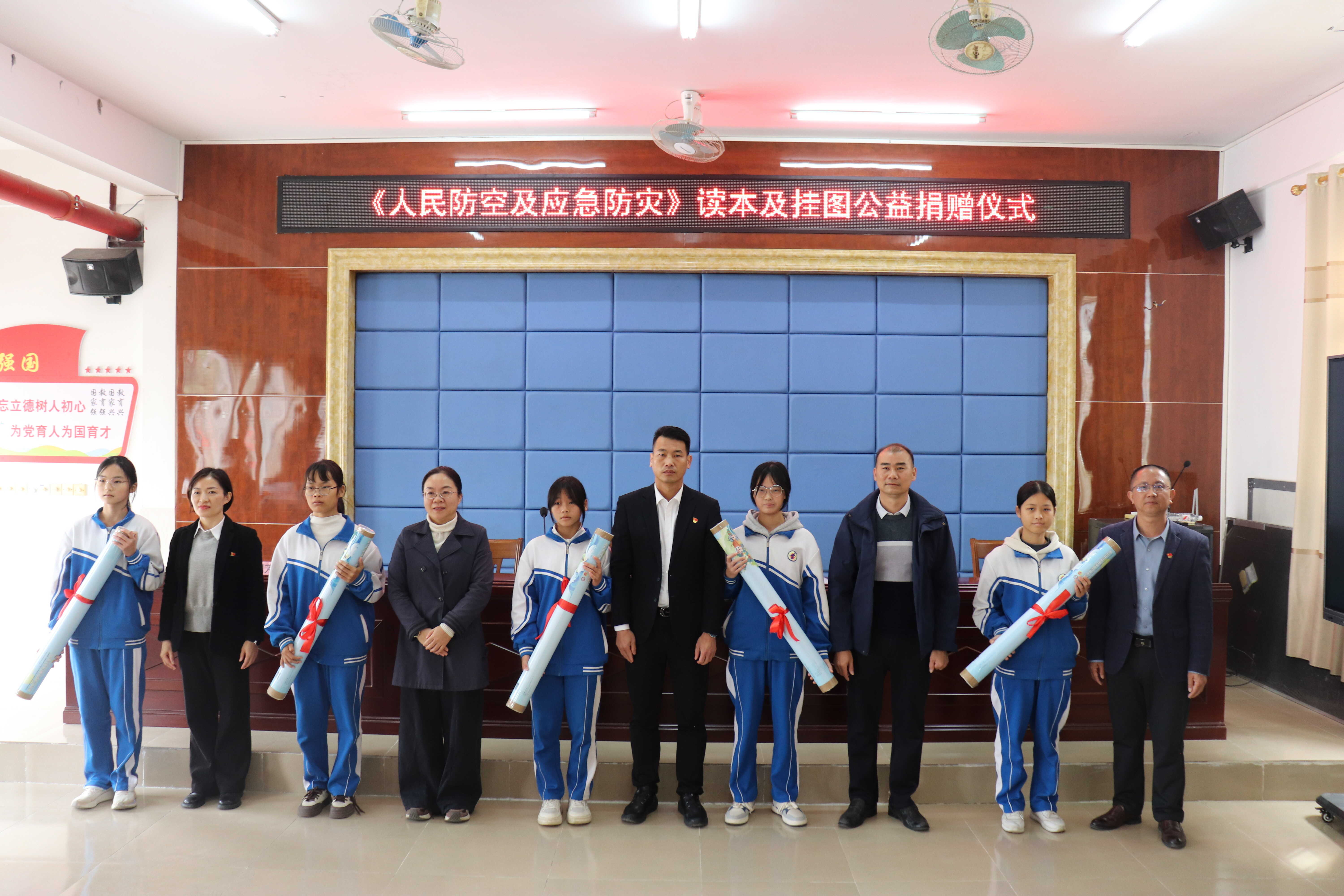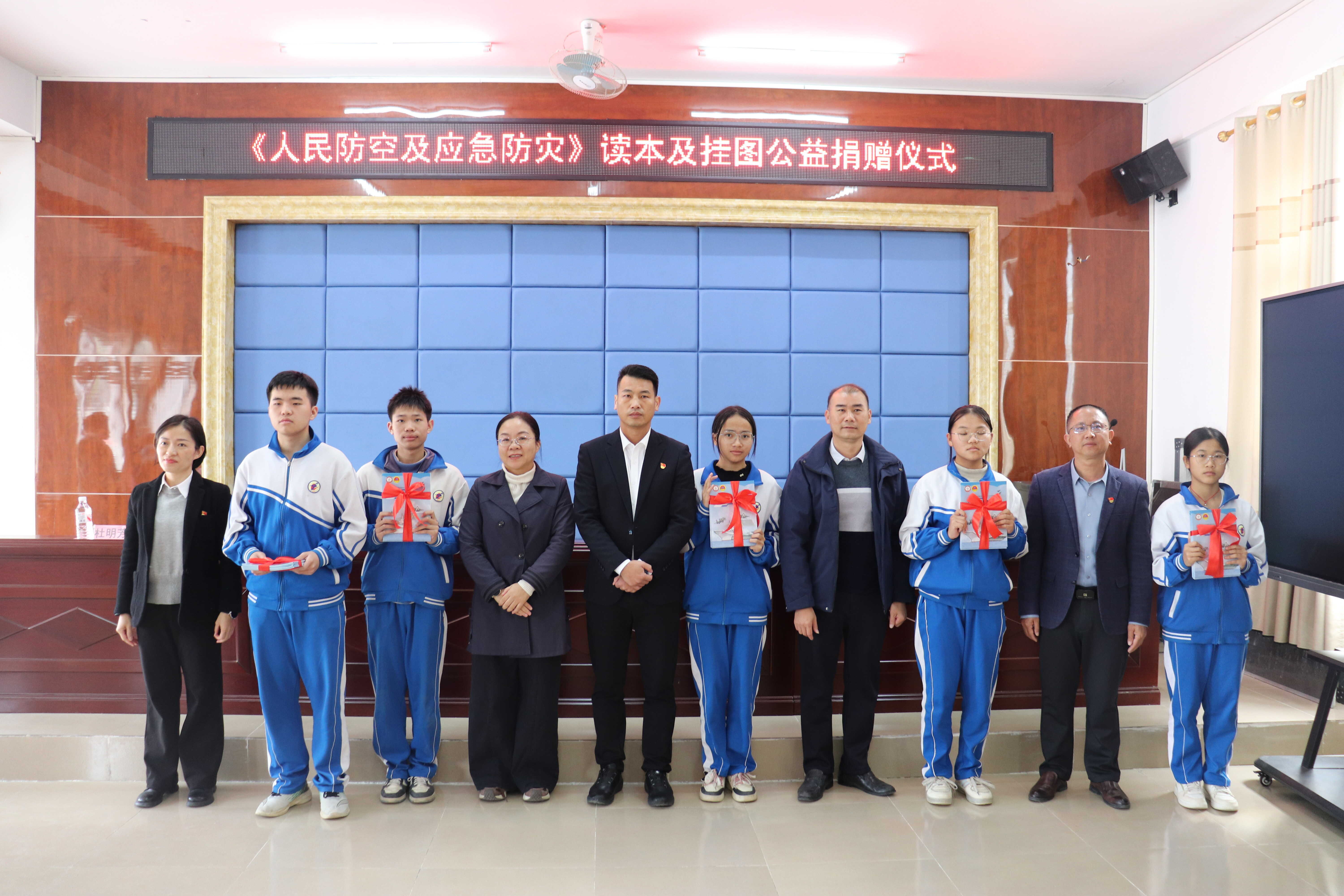 为深入普及国防动员及人防知识,强化青少年国防观念,凝聚社会合力推进全民国防教育落地见效,根据自治区国动办“我为戍边添光彩”宣传教育实践活动的统一部署,1月9日上午,钦州市国动办联合市教育局、中国电信钦州分公司,在钦北区长滩中学举行《人民防空及应急防灾》读本及挂图公益捐赠仪式。活动以“捐赠人防读物 深化国防教育 共筑安全防线”为主题,搭建起政、企、校沟通协作的桥梁,为青少年国防教育建设注入强劲动力。