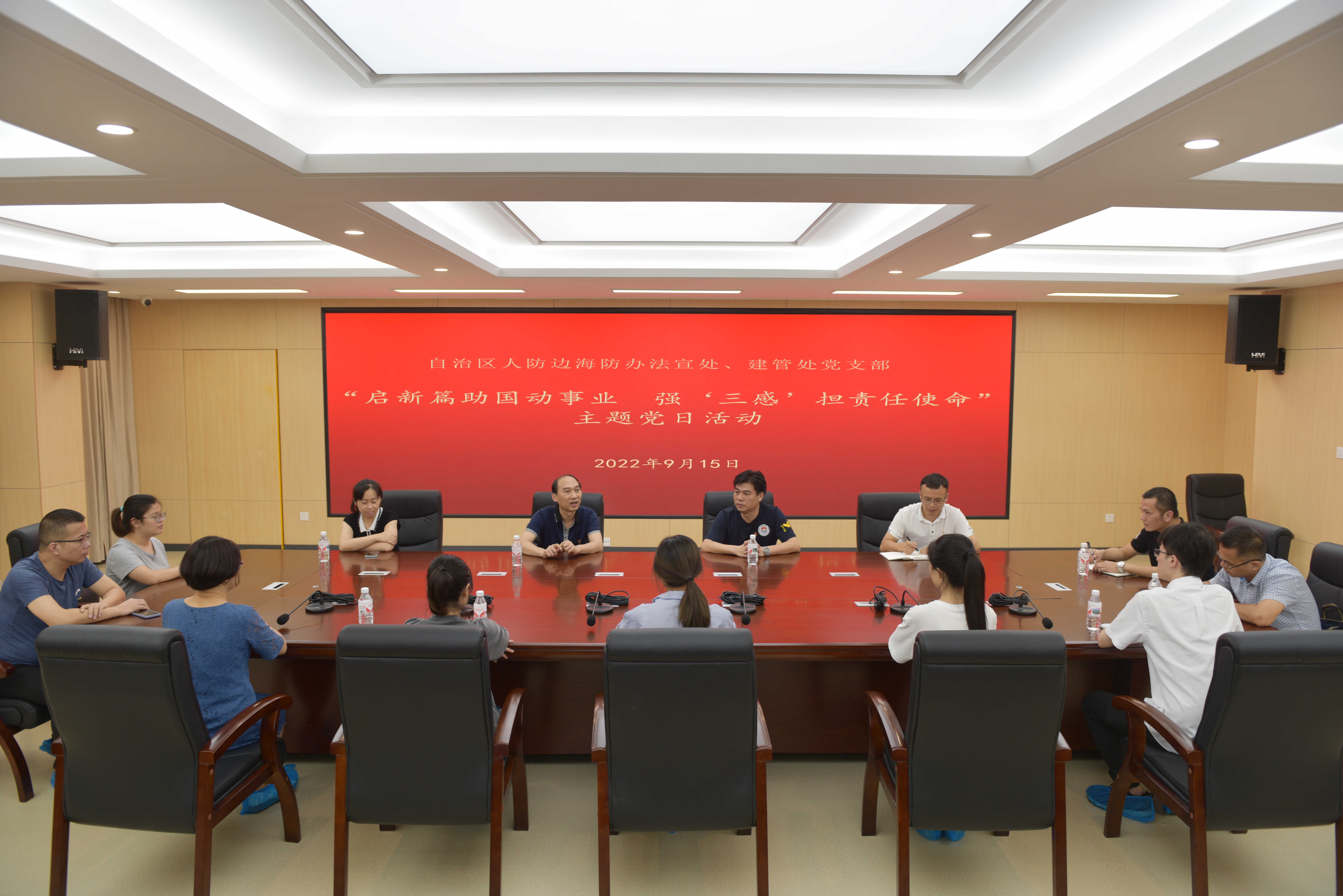 9月15日,在已改造完成的自治区国防动员综合业务中心,自治区人防边海防办法宣处、建管处党支部联合开展“启新篇助国动事业 强‘三感’担责任使命”主题党日活动,推动党建引领业务工作。
