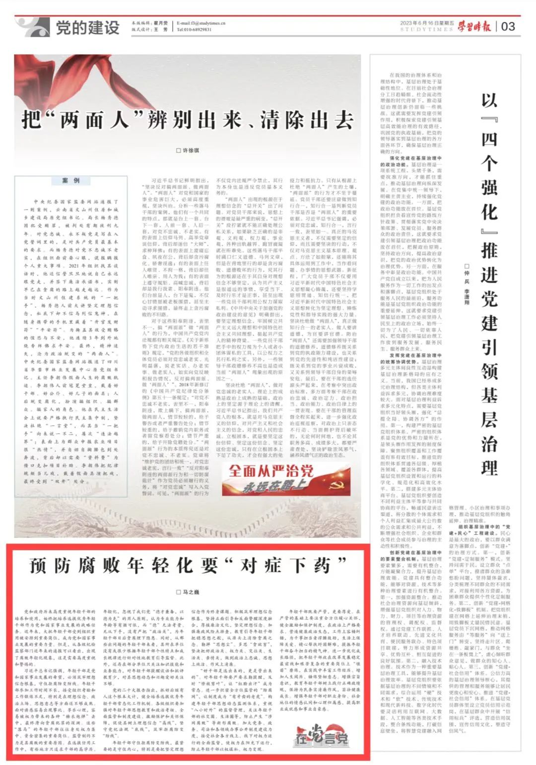 “好干部是选出来的,更是管出来的”。对年轻干部要严要求勤提醒,及时“修枝剪叶”,让“红脸出汗”成为常态。进一步织密全方位监管的“防腐网”,让制度成为“有牙齿的老虎”。构建年轻干部思想动态监测体系,重视“八小时外”的监督管理,关注年轻干部的社交圈、生活圈等,防止产生“涉网腐败”等新型腐败。加大党务、政务、司法和各领域办事公开制度建设力度,接受社会各方线上、线下对权力运行的全面监督,使权力在阳光下运行,防止年轻干部以权谋私、权力变现。