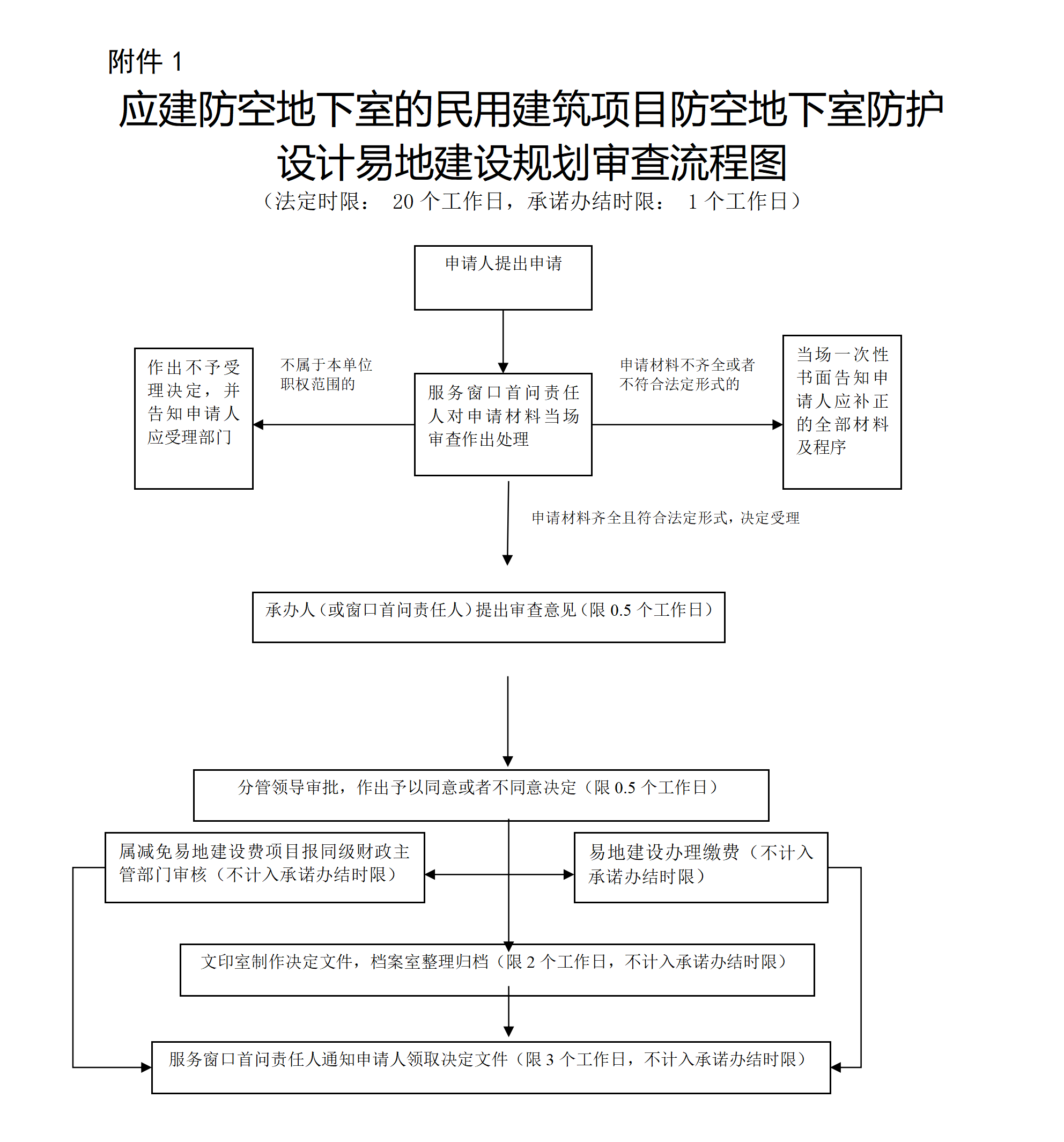 流程图-应建防空地下室的民用建筑项目防空地下室防护设计易地建设规划审查流程图.doc