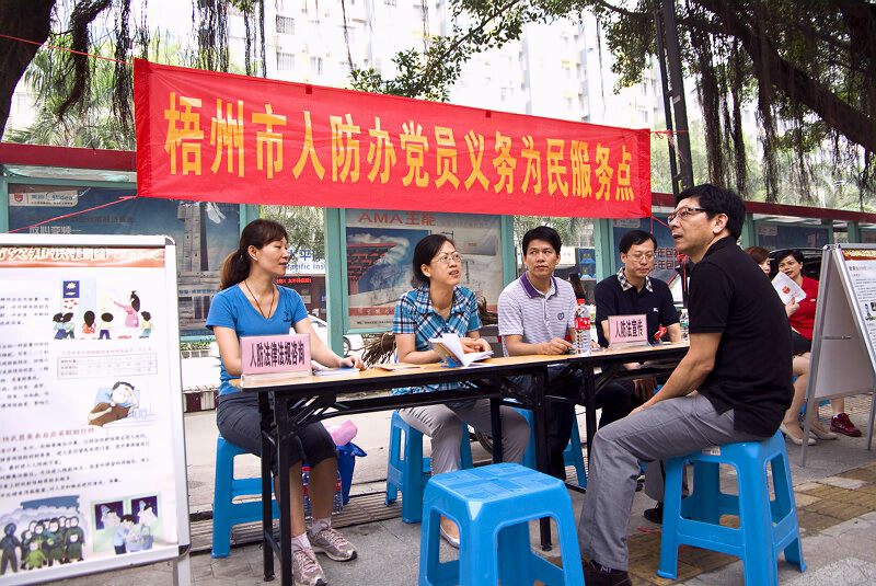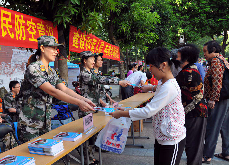 党员义务上街进行人防知识宣传及法律法规咨询