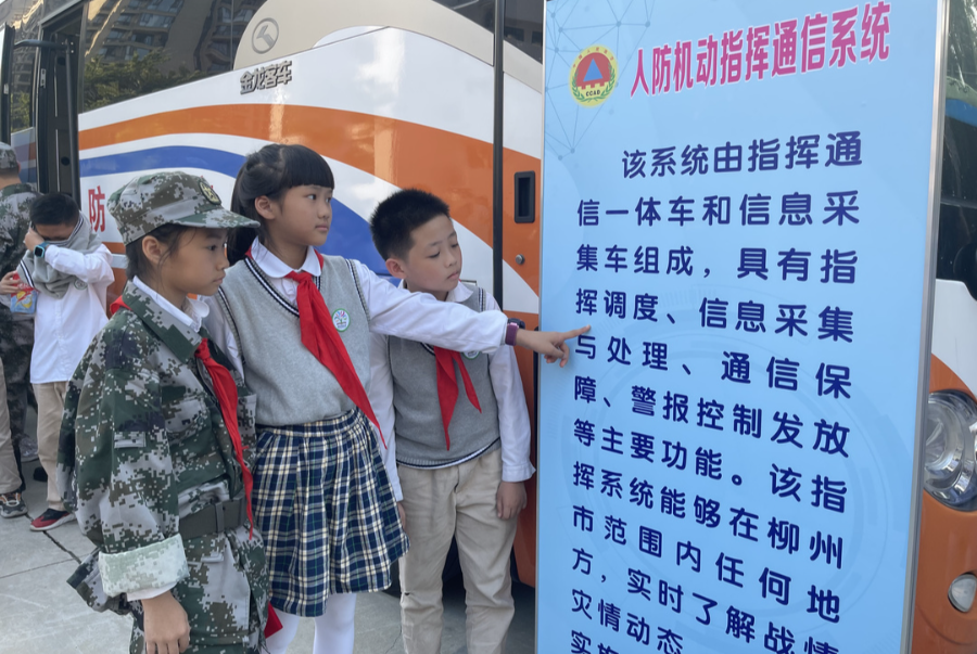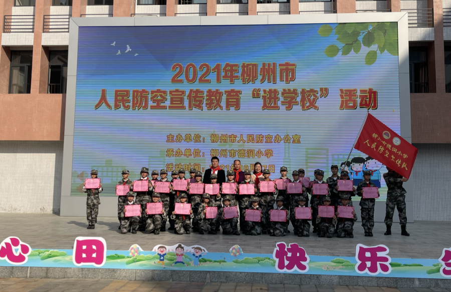 10月27日,柳州市人防办在市德润小学组织开展人民防空宣传教育“进学校”活动。