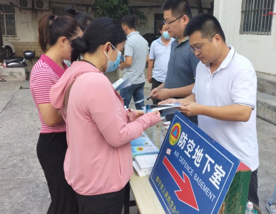 活动现场,党员干部和街道办、社区工作人员向大家发放《中华人民共和国人民防空法》《南宁市人民防空管理办法》和《人防科普知识宣传册》,对防空地下室的建设依据、重要作用,以及各类标志牌、指示牌、标识牌的悬挂位置作了介绍。在宣传展板前,南宁市、西乡塘区人防主管部门的党员志愿者围绕人民防空的地位作用、防空警报信号的识别、对空袭和自然灾害的应急应对方法等作详细讲解。