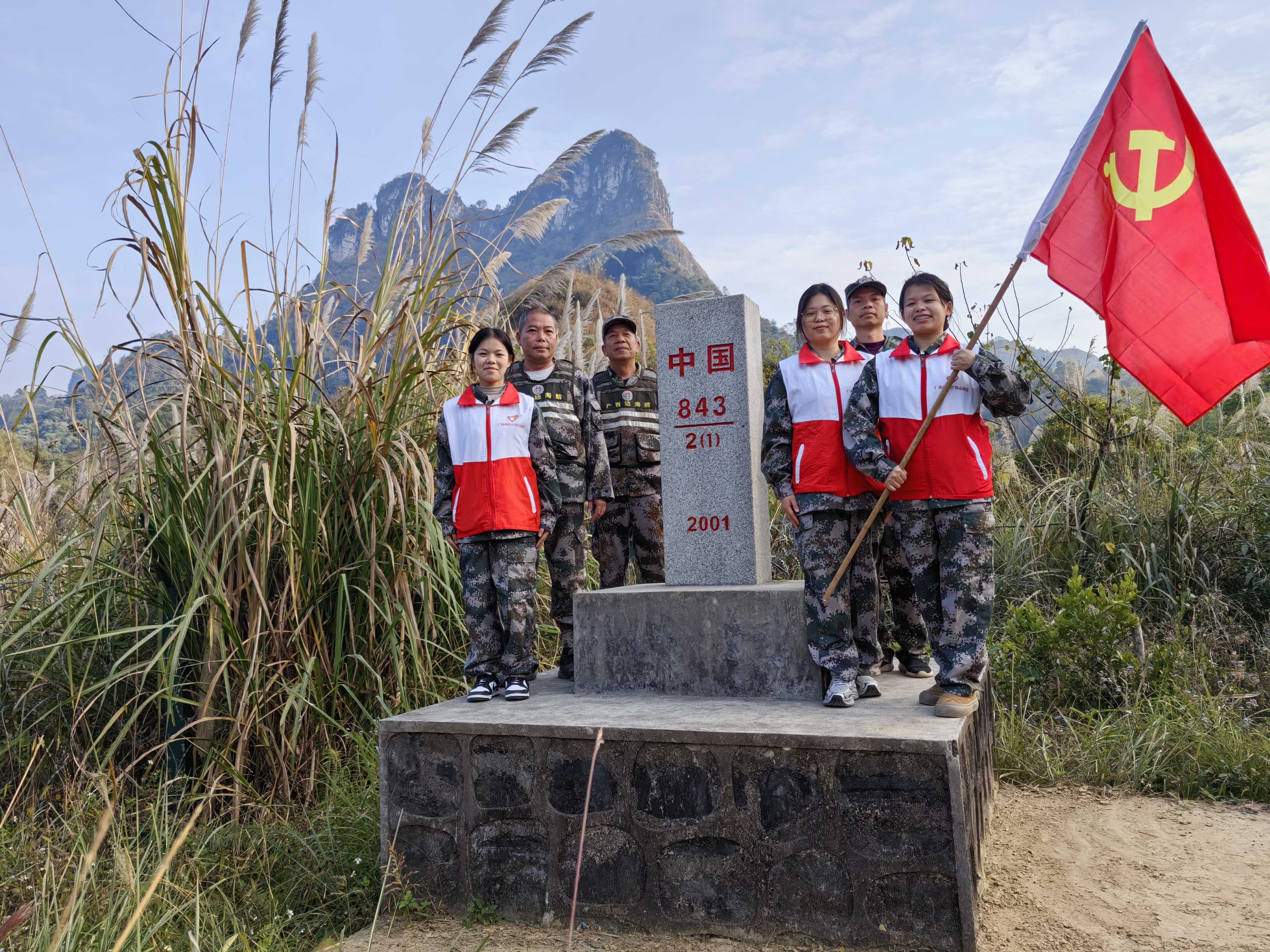 大新县国动办西部计划志愿者青年护边指导员与硕龙镇护边队员联合巡查了843(1)至837(1)号界碑号段边界,以车巡与步巡相结合的方式,围绕重点区域、重点地段开展护边巡防,查看边境拦阻设施,研判风险隐患和不稳定因素,研究应对措施。