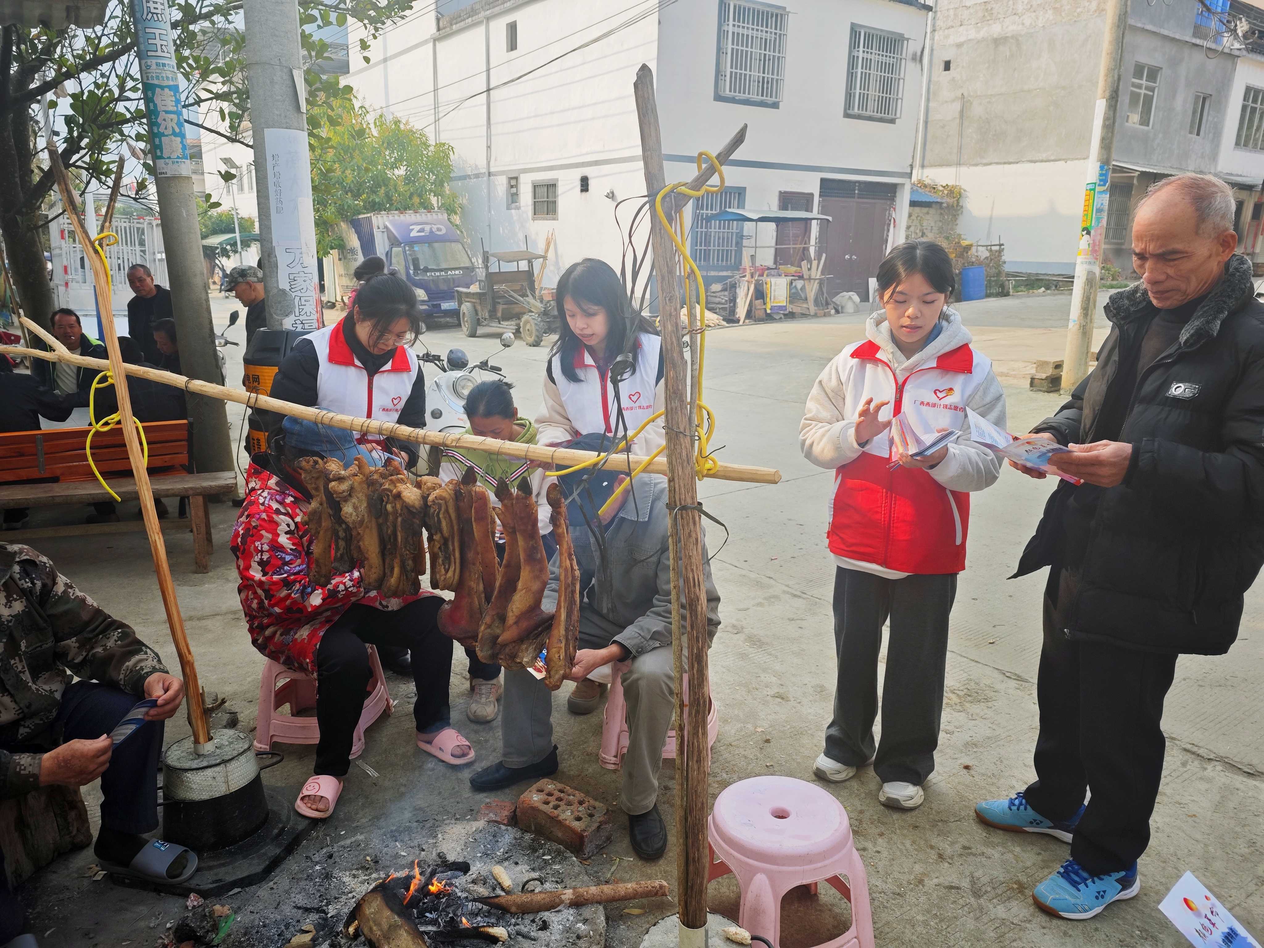 在硕龙镇门村,西部计划志愿者通过板凳宣讲、发放宣传册等形式进行国防法规宣传,向边民详细讲述了什么是国防、为什么要讲国防教育等内容,并深入浅出地宣讲边境政策法规及《中华人民共和国国防教育法》等法律法规,呼吁边民爱国护边,争做守边戍边好公民。