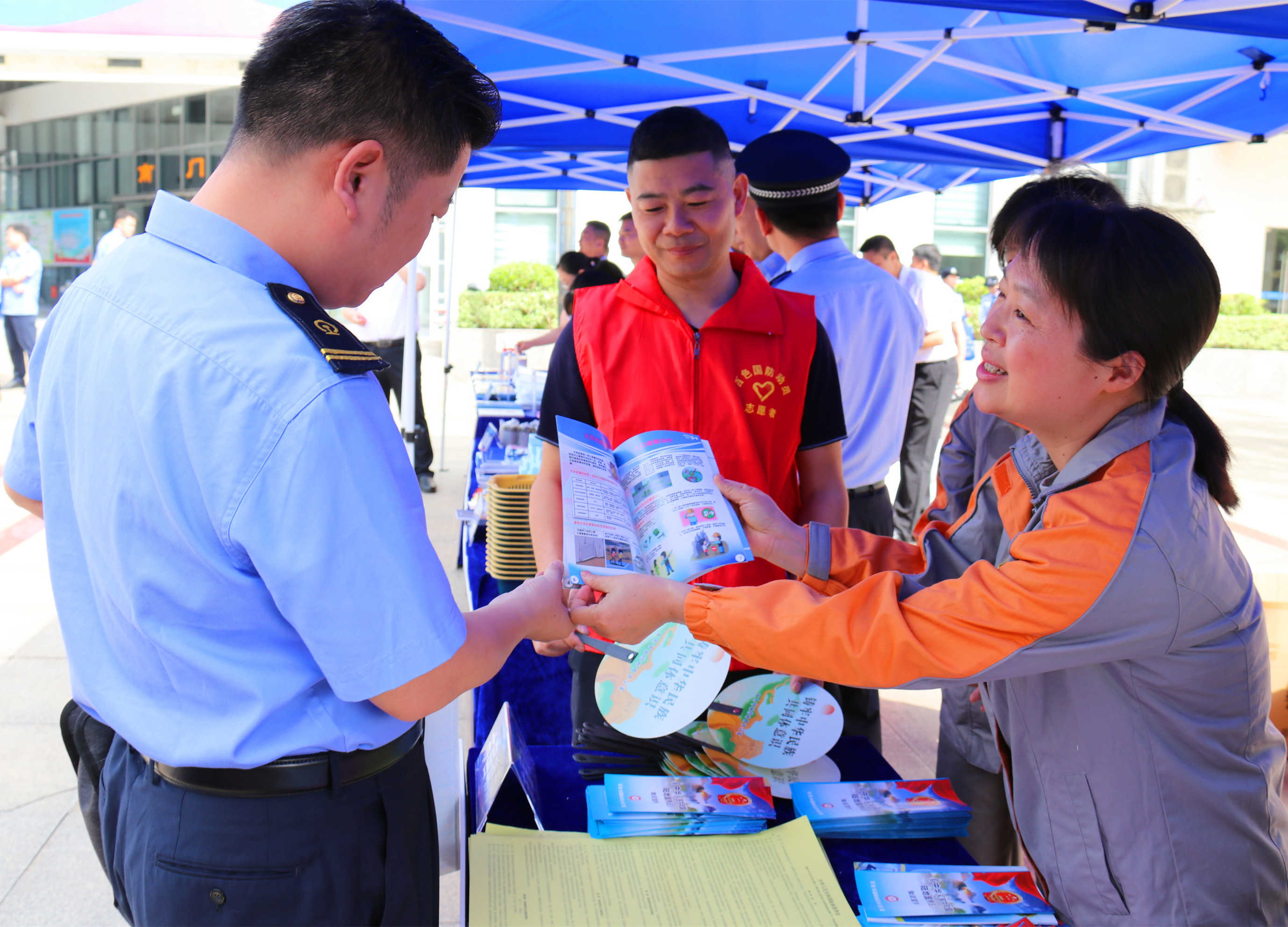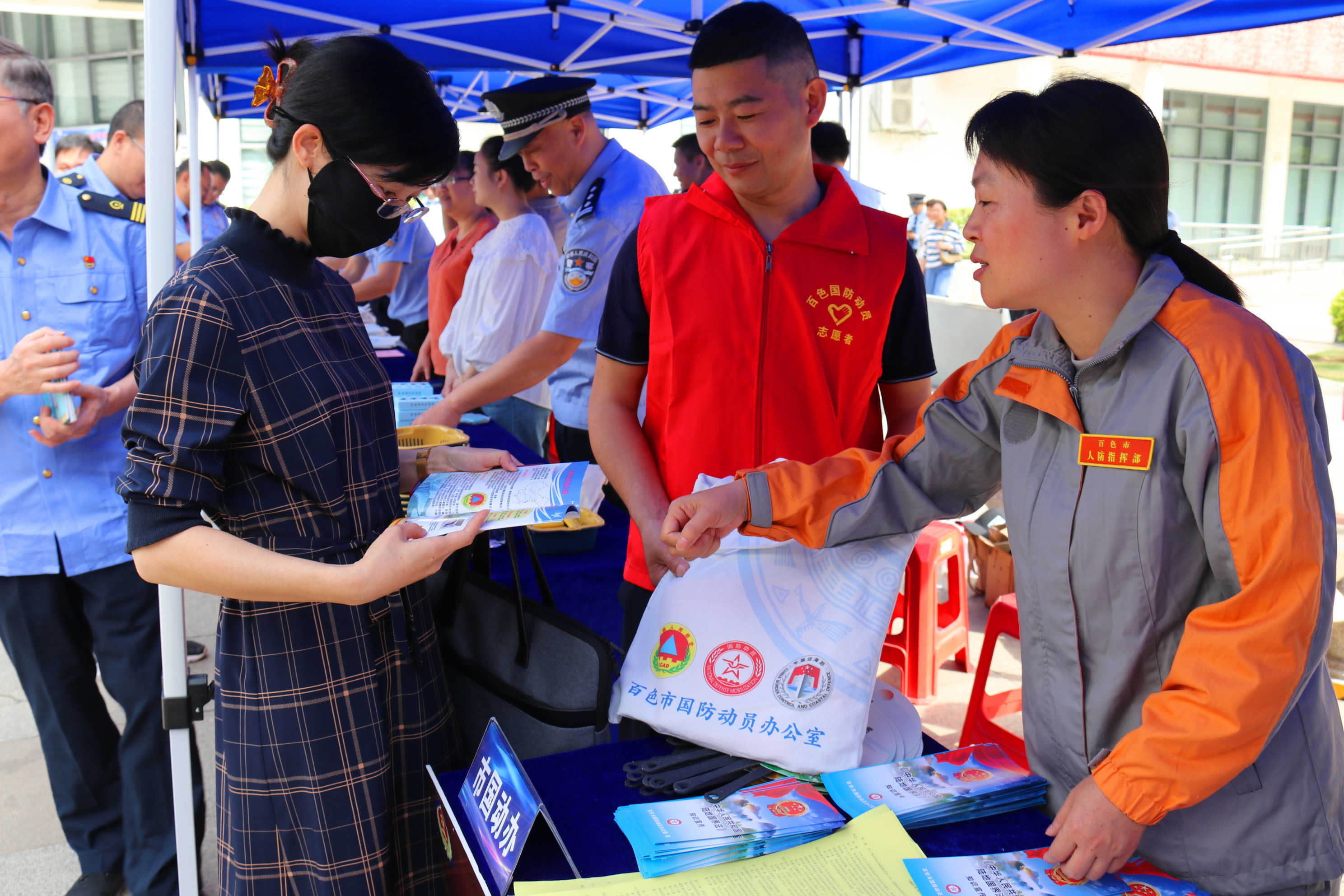 活动现场,通过悬挂宣传标语、发放宣传资料、现场咨询等方式,积极宣传《中华人民共和国国防动员法》《中华人民共和国人民防空法》《中华人民共和国陆地国界法》等法律法规,将总体国家安全观与国防动员理念深植于民众心中,切实让维护国家安全成为全民的自觉行动,在全社会营造出“国家安全、人人有责”的浓厚氛围。