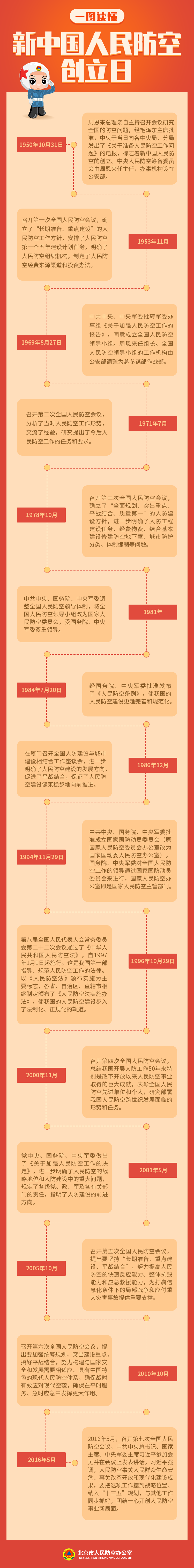 在人防历史上,10月31日是个特别的日子——新中国人民防空创立日。2010年7月10日,经国务院、中央军委批准,国家人防办确定1950年10月31日为新中国人民防空创立日。