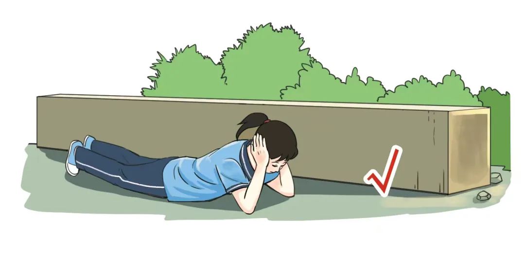 在开阔地面的人员,应迅速背向爆心卧倒。卧倒的方法是:避开(背向)爆炸方向,面部向下,护住耳朵,闭上双眼,用手肘支撑着地面,胸部和腹部不要紧贴地面,防止身体被震伤。