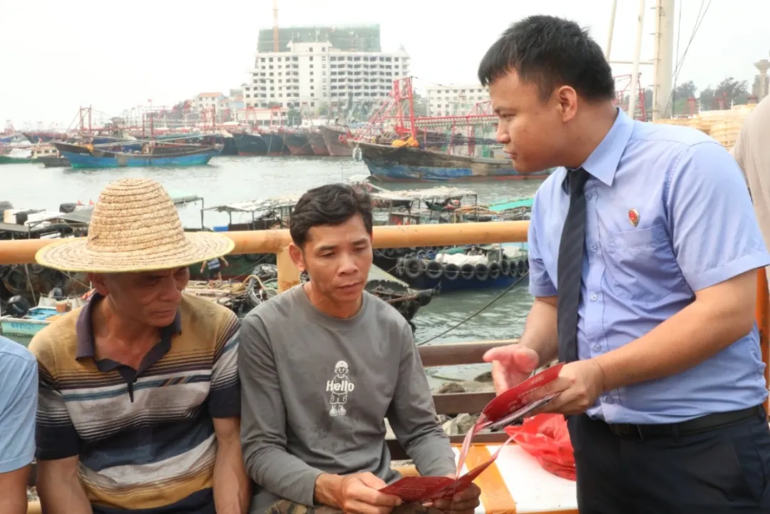 谁执法谁普法,类似的对话在十几条船上同时进行。检察官耐心讲解,渔民认真聆听,这一幕幕,构成了边海一线普法的生动画面。