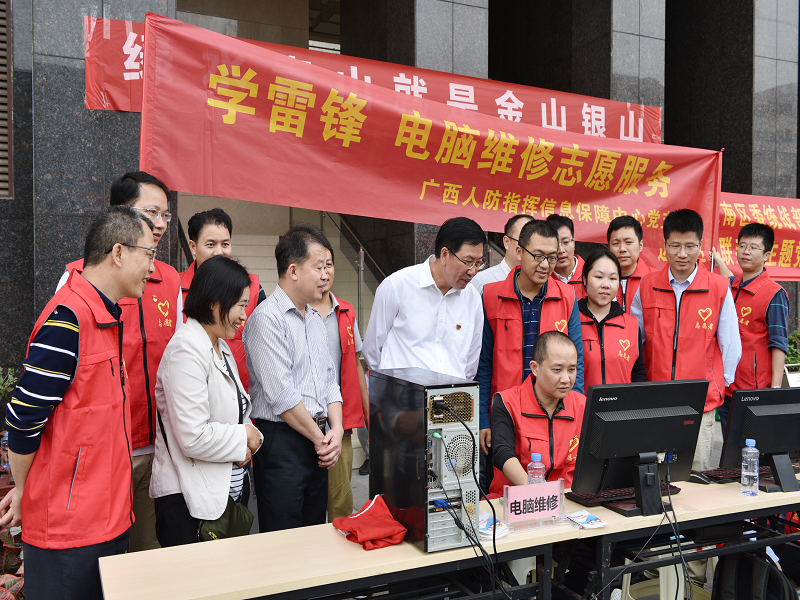 “我的电脑坏了,可以帮我修理一下吗?”“我的肩膀一直感觉很酸痛,请帮我看看怎么样可以缓解。”看到志愿服务队来到社区,居民们踊跃排队,向志愿者寻求帮助。志愿服务队分工明确,各司其职,在现场架起桌板,拉上横幅,为社区居民提供党的十九届五中全会精神宣讲、人防边海防国防交通法律法规及人防知识科普、家电和电脑维修等服务。此外,活动还邀请广西中医一附院、建设银行广西分行、中国电信广西分公司、同望律师事务所等单位的志愿者为居民提供义诊及健康咨询、金融理财咨询、通信技术及信息化建设咨询、法律咨询等全方位服务,受到广大社区居民的一致好评。