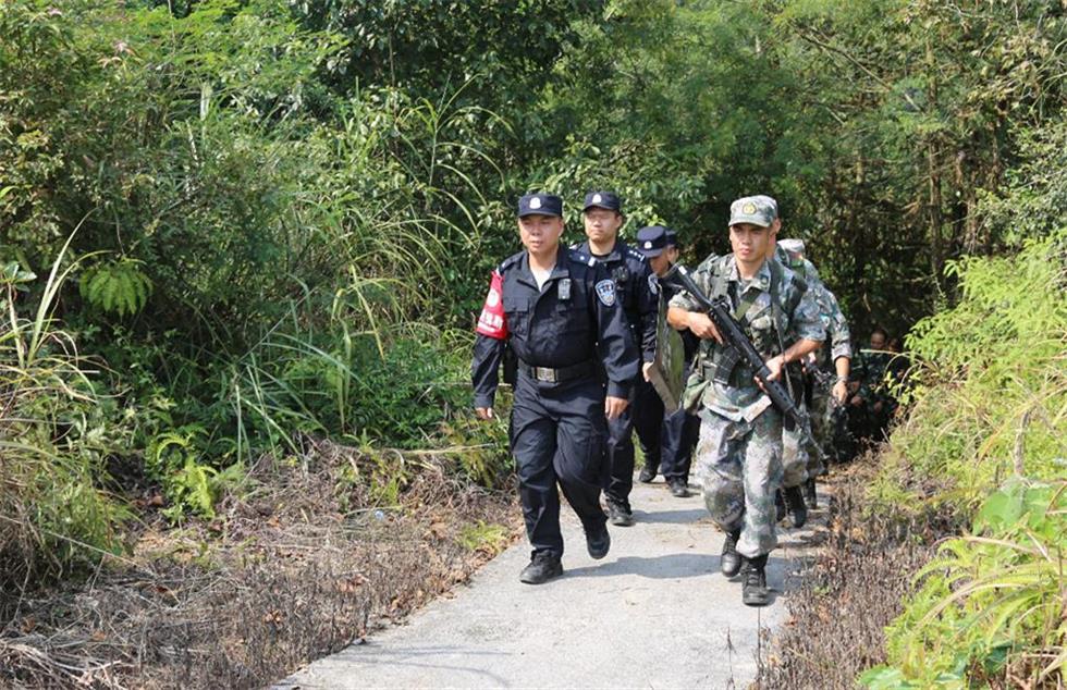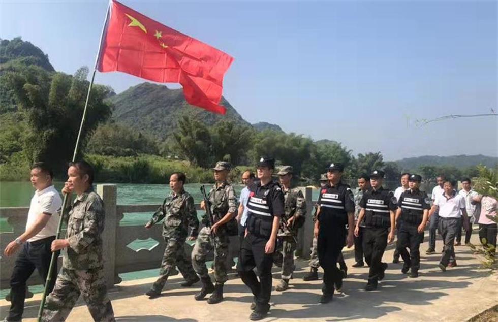 图1:靖西市军警民联防分队对重要地段进行踏查