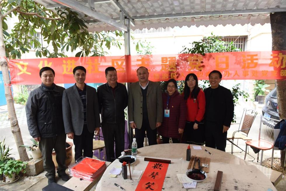为了给居民营造喜庆、祥和的节日氛围,自治区人民防空和边海防办公室各党支部服务志愿者在办党组书记、主任蔡中平同志带领下,与联系点尧头岭社区党委联合开展“亲情社区·和谐邻里”迎新春为民志愿服务活动。
