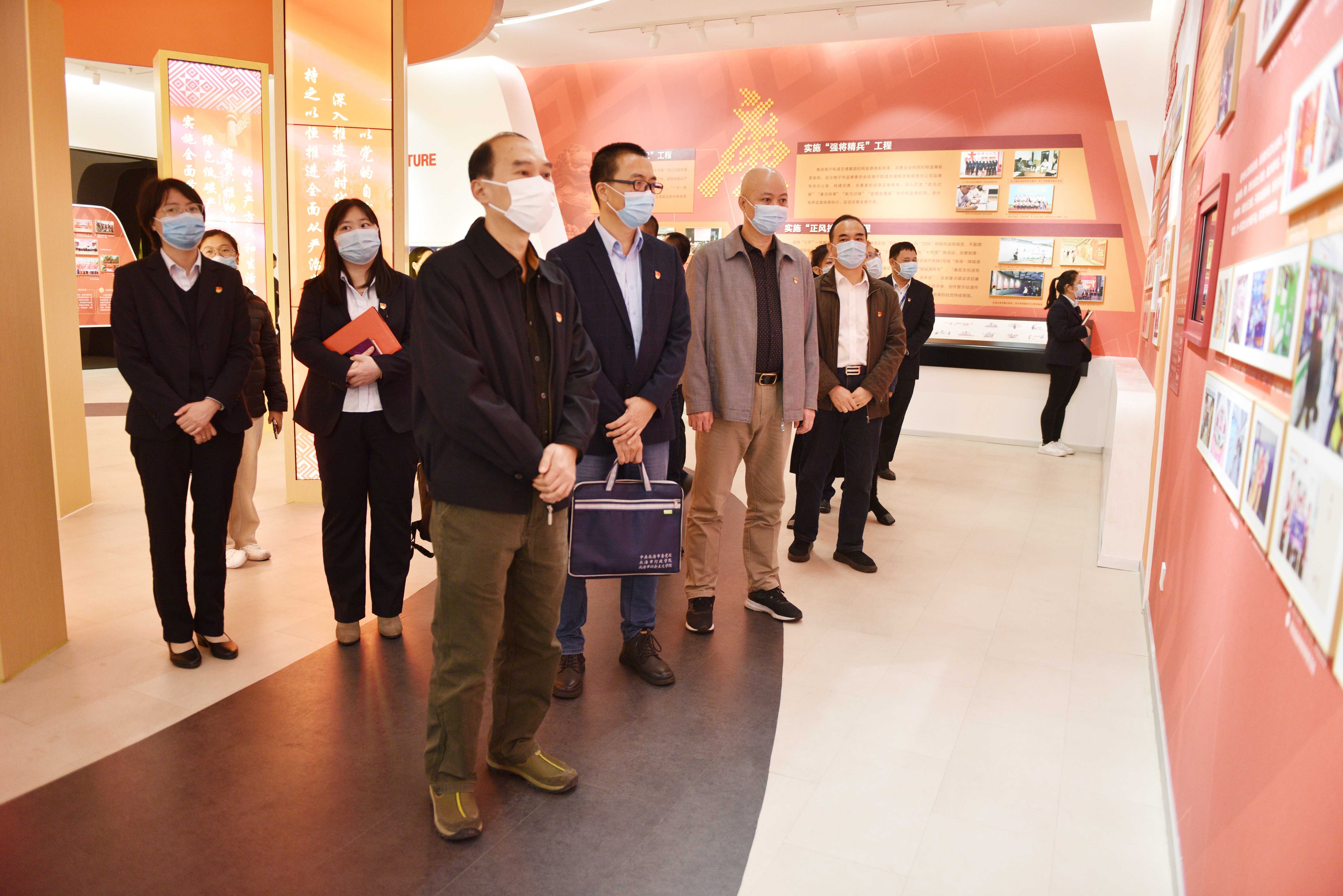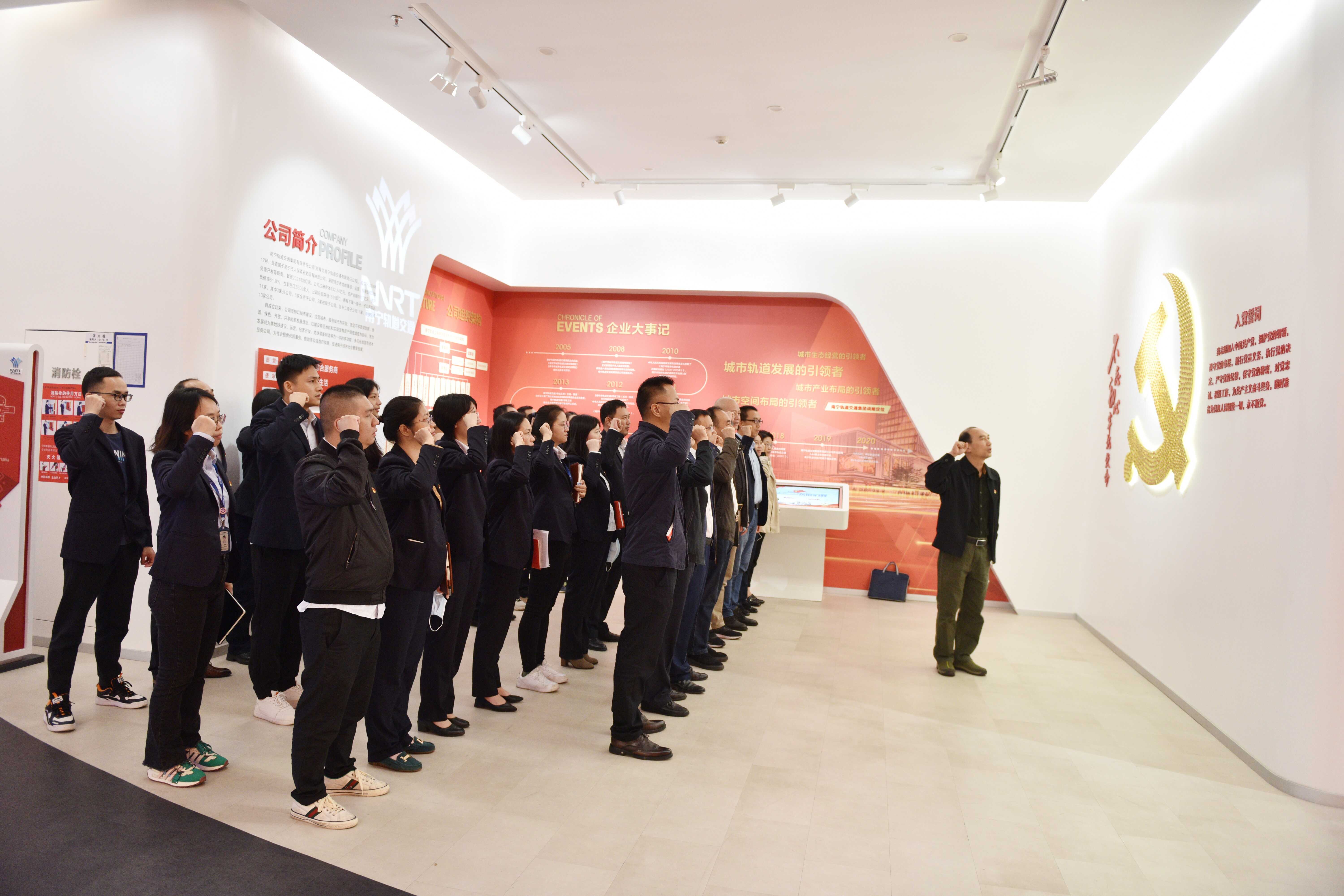 在南宁轨道交通党建文化展示中心,全体党员高举右拳,面向党徽庄严宣誓,再次接受洗礼,铭记庄严承诺,牢记初心使命。跟随讲解员的引导,党员们依次参观了南宁轨道交通党建文化展示中心“先锋站”“时代站”“攻坚战”“便民站”“飞跃站”5个主题场馆,了解企业发展大事记,深刻感受党建引领下南宁轨道交通建设发展成果,深入学习和借鉴企业以党建引领攻坚克难、强化党建阵地建设的经验。