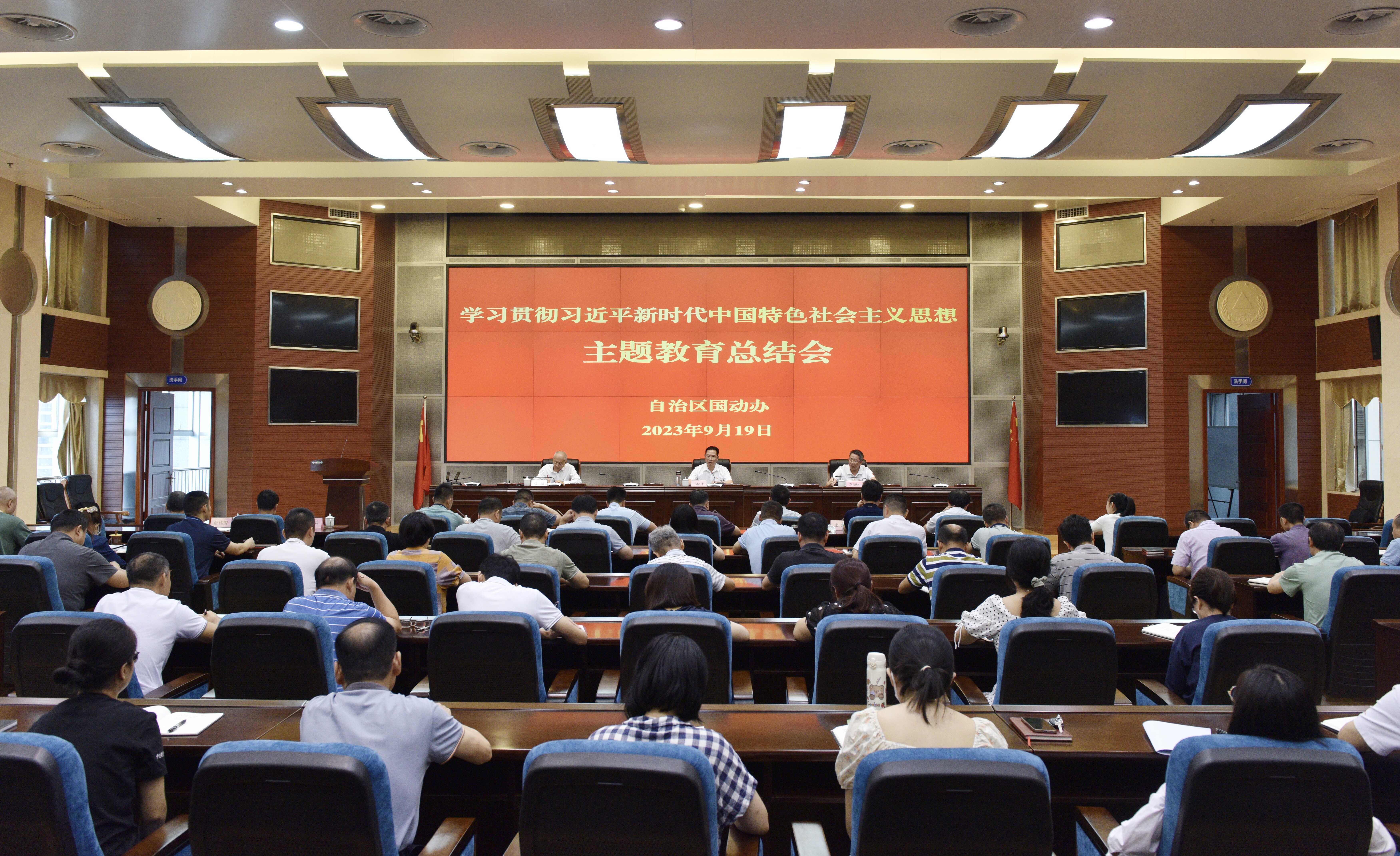 9月19日上午,自治区国动办召开学习贯彻习近平新时代中国特色社会主义思想主题教育总结会,贯彻落实党中央、自治区主题教育第一批总结暨第二批部署会议精神,总结自治区国动办主题教育经验成效,对巩固拓展主题教育成果工作进行部署。自治区国动办党组书记、主任韦绍仕主持会议并作总结讲话。