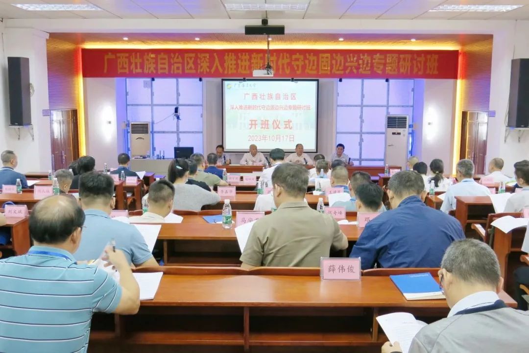 10月16日至20日,自治区国动办在广东海洋大学举办深入推进新时代守边固边兴边专题研讨班。办党组成员、副主任赵越出席开班仪式并作动员讲话。自治区维护海洋权益工作协调机制主要成员单位联络员、自治区边境沿海市县边海防主管部门领导及业务骨干共50人参加培训。