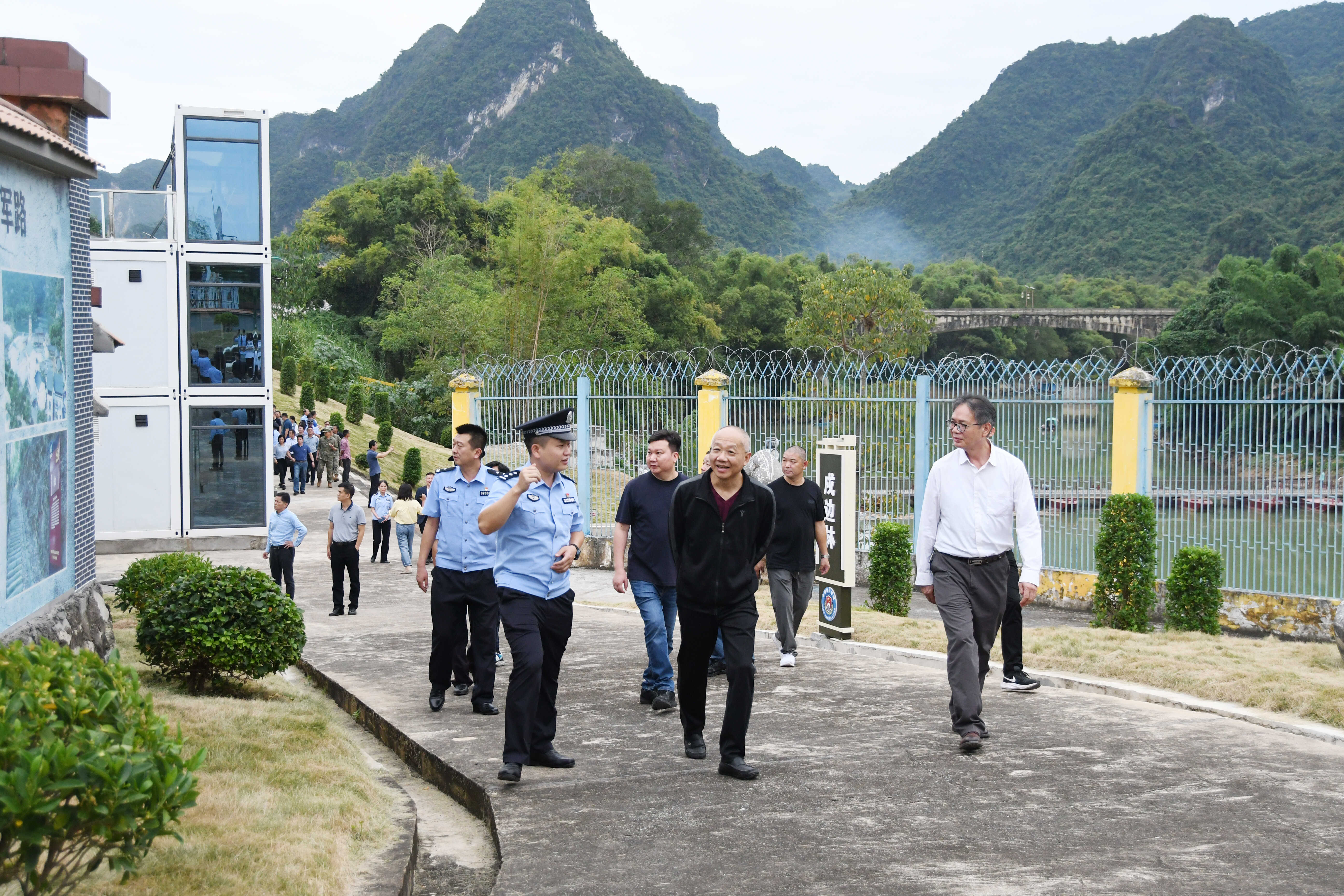会前,与会人员先后到宁明县爱店镇那逢屯爱国主义教育基地、中越德天(板约)瀑布跨境旅游合作区、龙州县水口边境派出所及三江口执勤点等地进行现场观摩,了解崇左市边防管控和党政军警民合力强边固防工作开展情况。