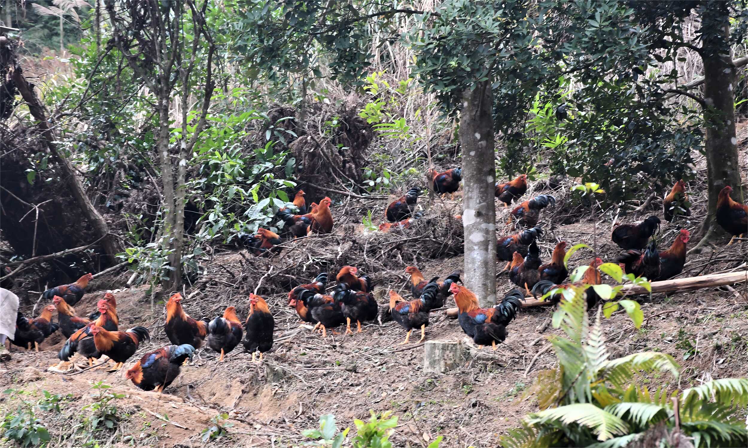 多年来,仁益村一直以发展八角产业为主,目前拥有超过3500亩的八角林,这一广袤的绿色资源为发展山林经济提供了得天独厚的生态优势。为进一步拓宽村集体经济收入来源,村“两委”和驻村工作队在充分调研和论证的基础上,决定利用仁益村良好的生态优势,采取“专业合作社+脱贫户”的经营模式,积极探索在八角林下散养优质土鸡的产业道路。