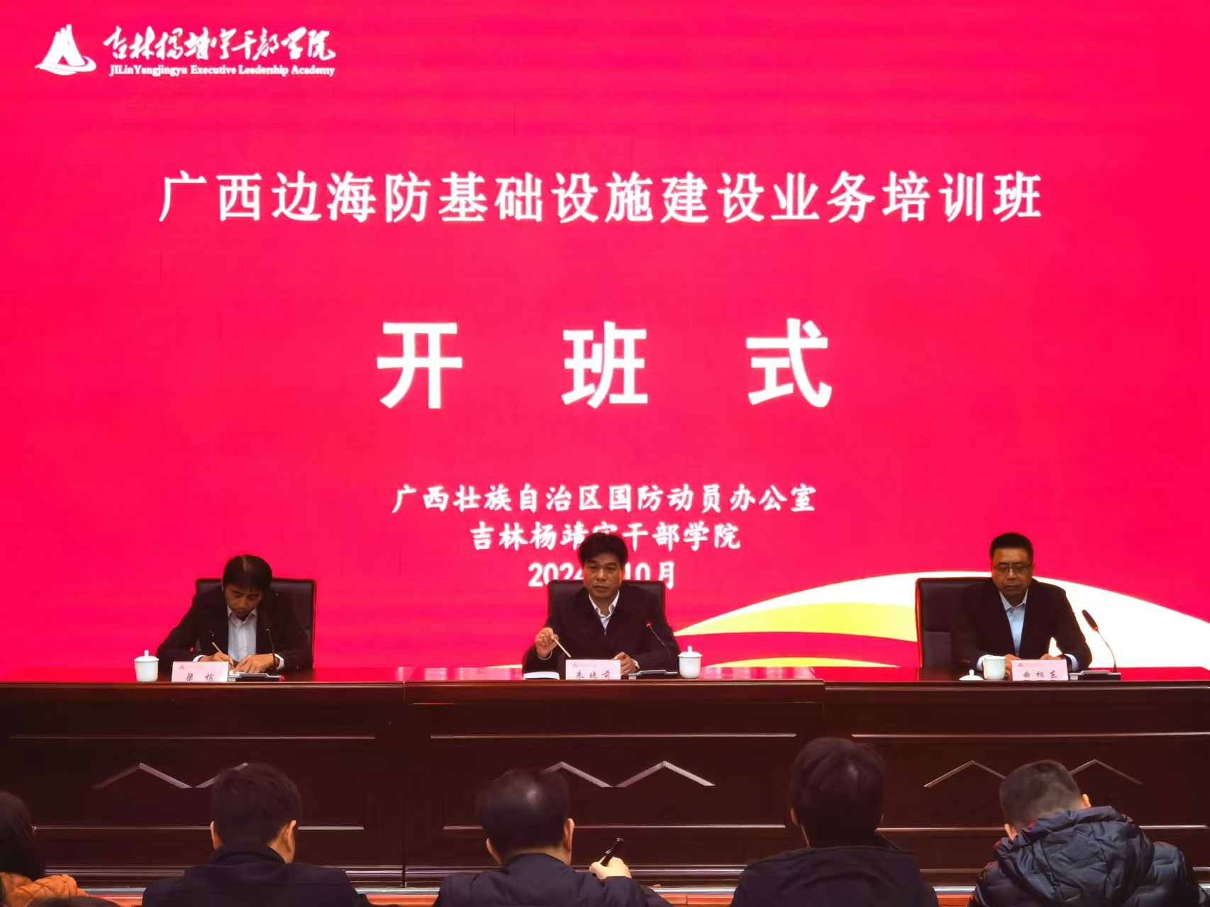 10月15日,广西边海防基础设施建设业务培训班在吉林杨靖宇干部学院开班。自治区国动办党组成员、副主任朱晓前,吉林杨靖宇干部学院领导出席开班仪式并讲话。朱晓前同志强调,学员们要进一步提高思想认识,深入学习贯彻党的二十大和二十届二中、三中全会精神,学深悟透习近平总书记关于强边固防重要论述,深刻领悟“两个确立”的决定性意义,坚决做到“两个维护”,切实践行学院培训各项课程任务,聚焦重点、学有所获,借鉴经验、学有所思,力求实效、学有所用。吉林杨靖宇干部学院领导作欢迎致辞。