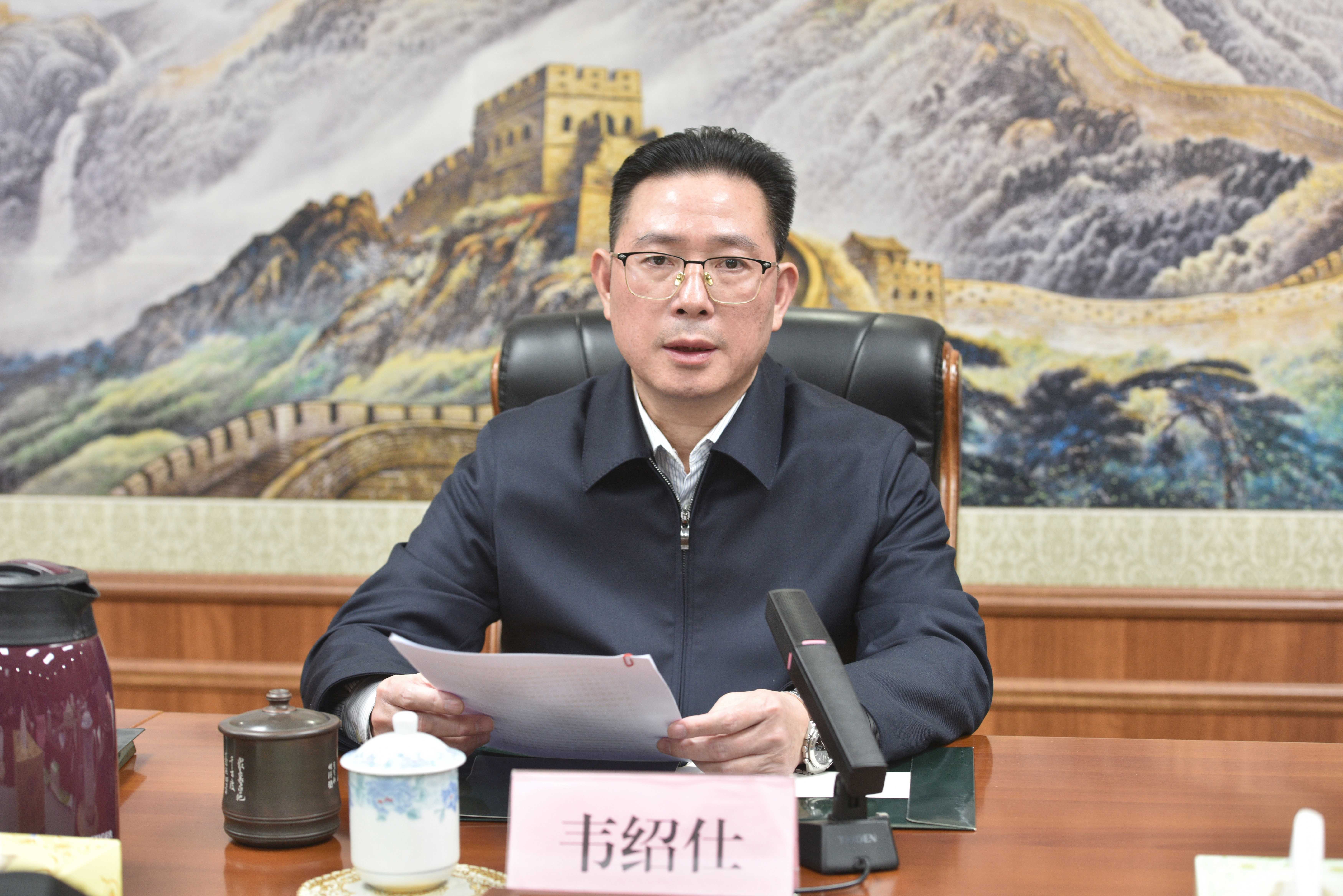 图为办党组书记、主任韦绍仕作讲话