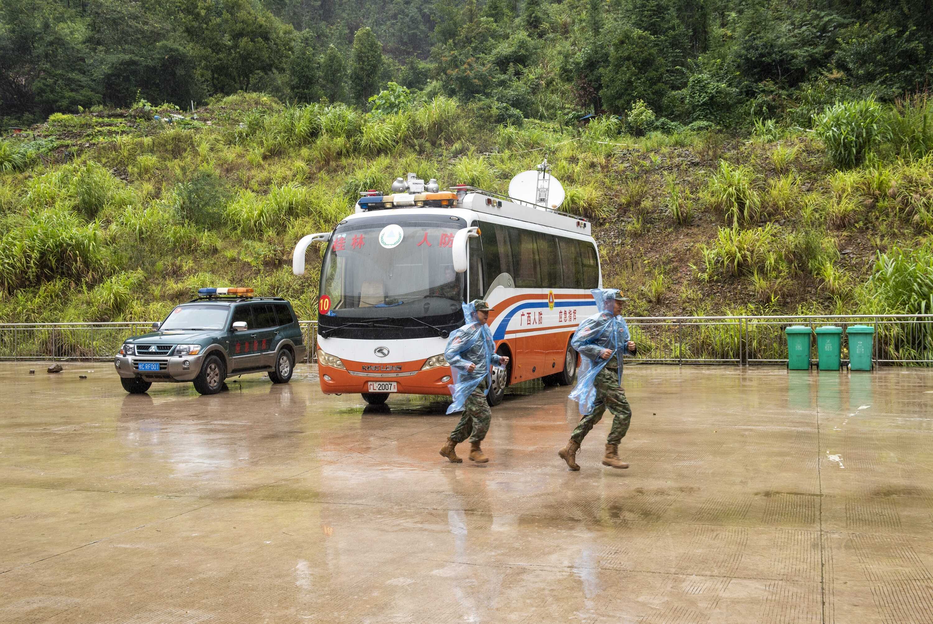 图为参演人员正奔赴通讯保障岗位