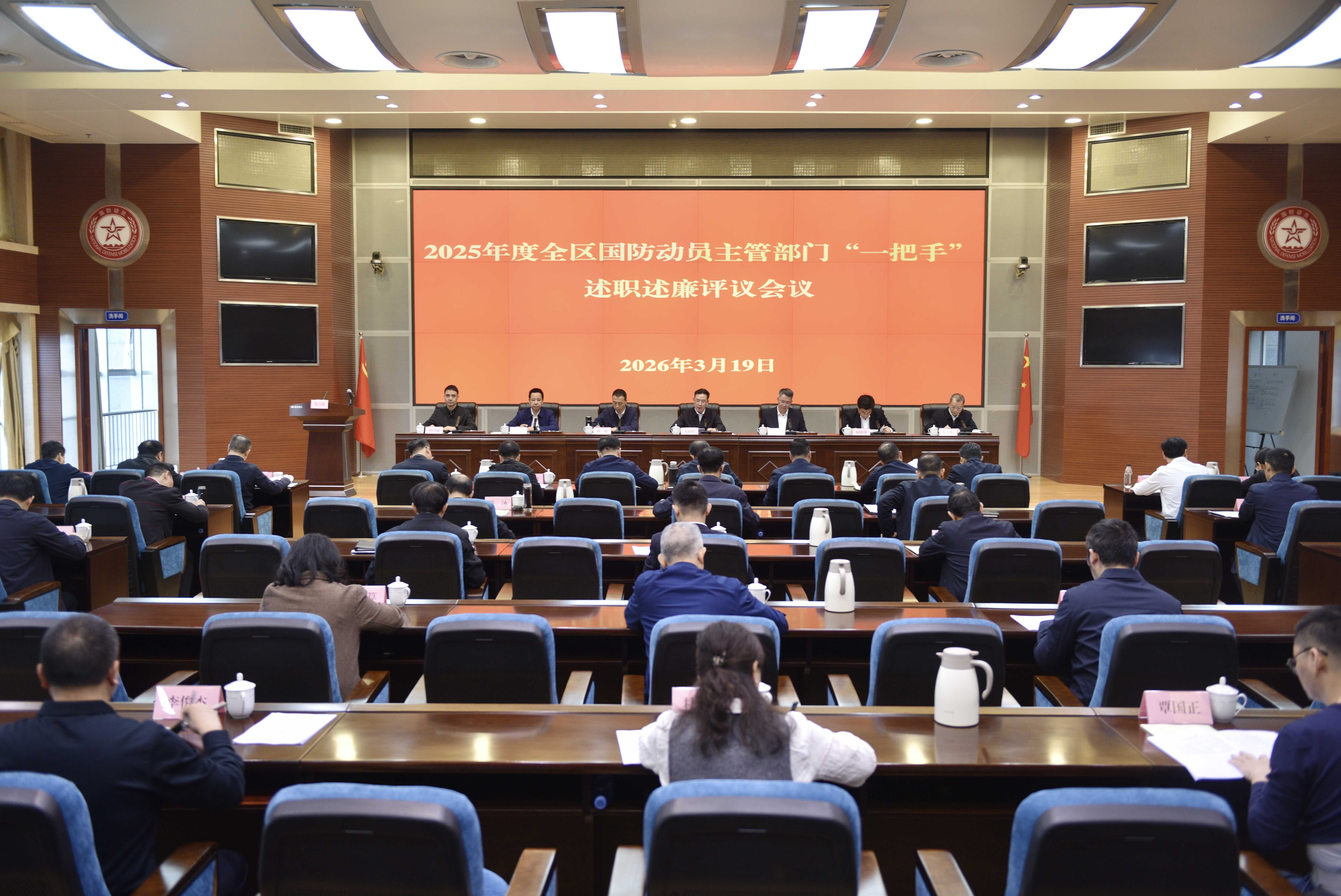 3月19日,自治区国动办召开2025年度全区国防动员主管部门“一把手”述职述廉评议会议,自治区国动办党组成员,驻厅纪检监察组领导,各市(南宁局集团公司)国防动员主管部门“一把手”、综合科室科长,自治区国动办机关各处处长、直属单位主要负责人参加会议。