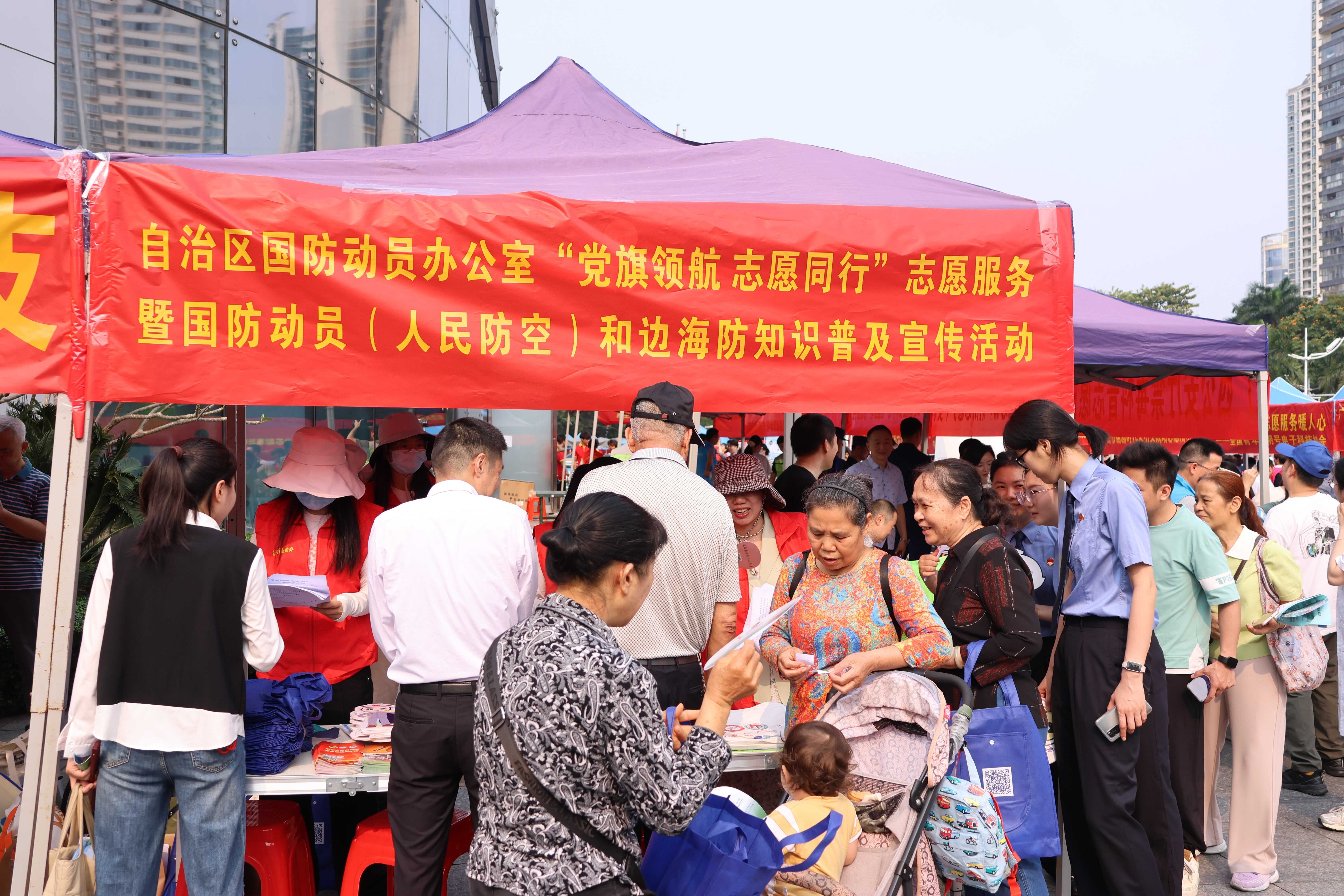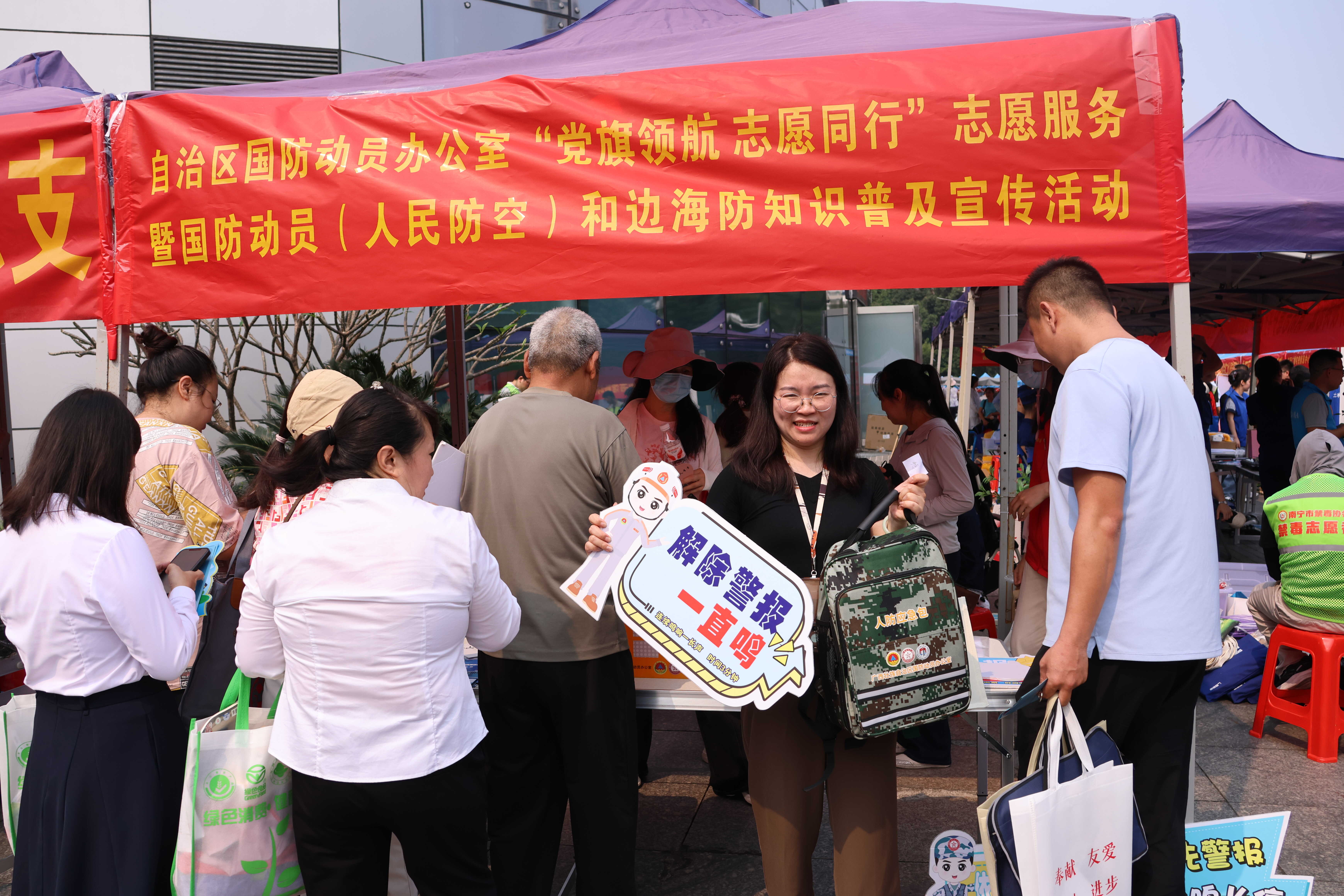 3月31日,自治区国动办积极参与由自治区党委区直机关工委、自治区党委社会工作部、自治区科协联合主办的2026年区直机关新时代文明实践志愿服务展示交流活动,组织开展“党旗领航 志愿同行”志愿服务暨国防动员(人民防空)和边海防知识普及宣传。
