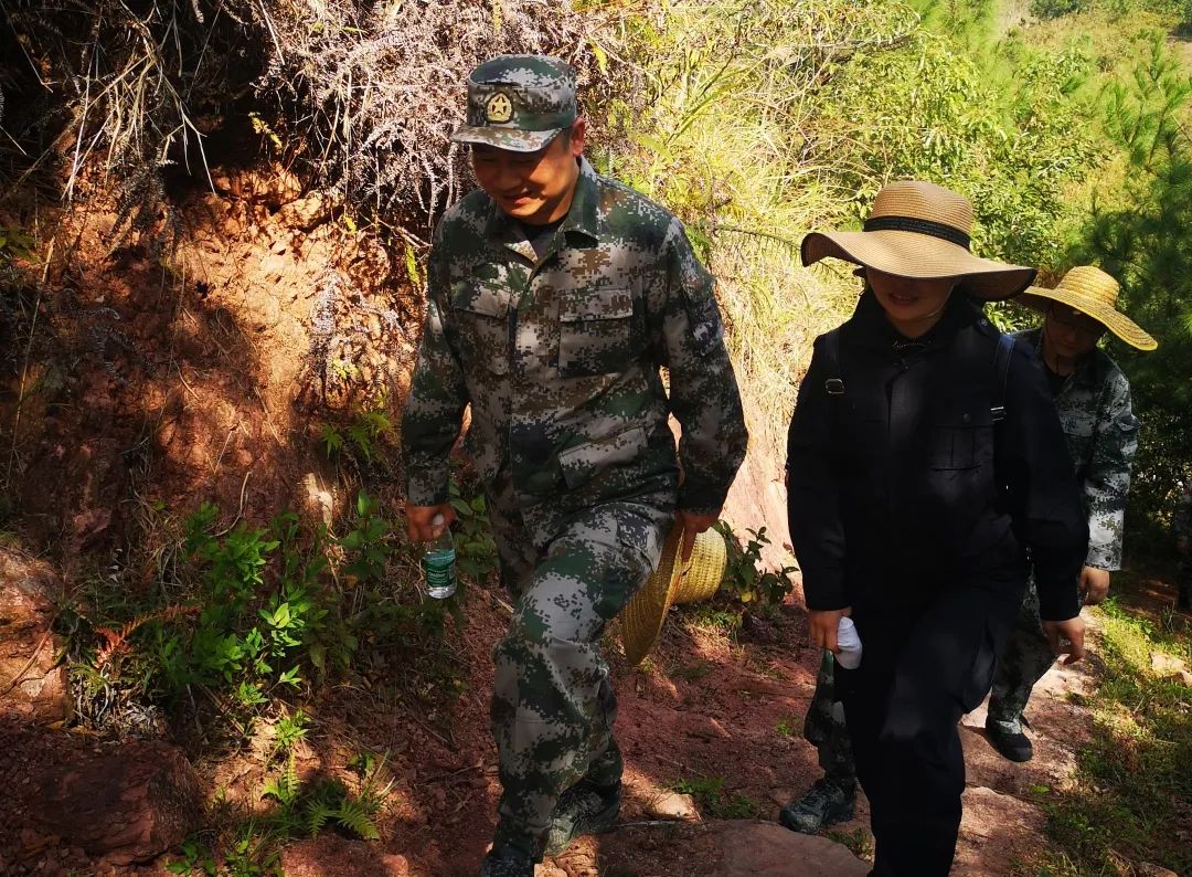 下午2点多,巡边踏边组在防城港市防城区峒中村开始巡边踏边活动。巡边踏边队员身着迷彩服,精神抖擞。从防城峒中北风口1307号界碑至防城峒中口岸1317号界碑,巡边队员们沿着边界的一座座山川、一条条河流,一步一个脚印,用脚步丈量边界线。晴空万里,烈日高照,巡边队员汗流浃背但士气高涨。一路上,巡边踏边组向护边员、当地边民详细了解边民的生产生活、沿边村落、边境通道、界碑状况、存在的困难和问题等,听取护边员对日常巡边工作的介绍。