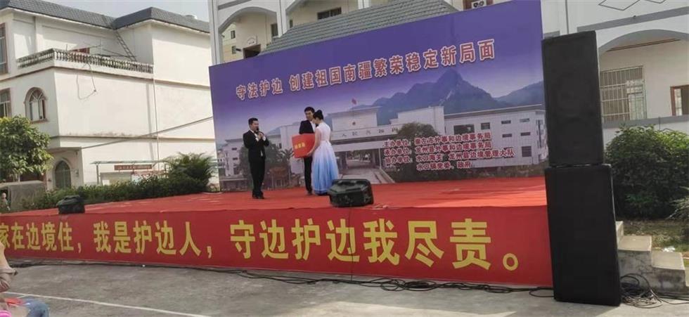 为进一步加强国防和爱国主义教育,提供边境群众依法守边护边意识,增强群众法治观念,防城港、百色、崇左市边海防主管部门于12月下旬集中开展形式多样的边境法律法规宣传活动,通过文艺演出、山歌对唱、知识问答、抽奖等群众喜闻乐见的形式边境法律法规宣传。