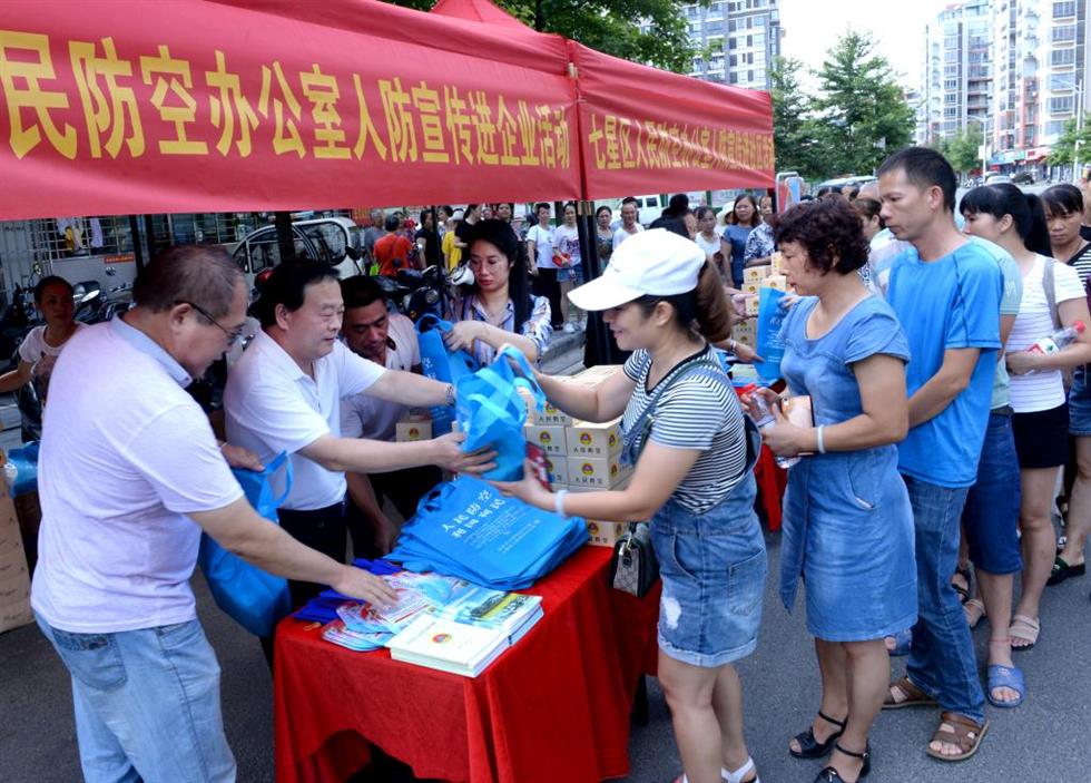 7月26日,由桂林市人防办和七星区人防办组织开展的人民防空知识宣传进社区暨人民防空示范社区创建活动在桂林市七星区空明社区举行。