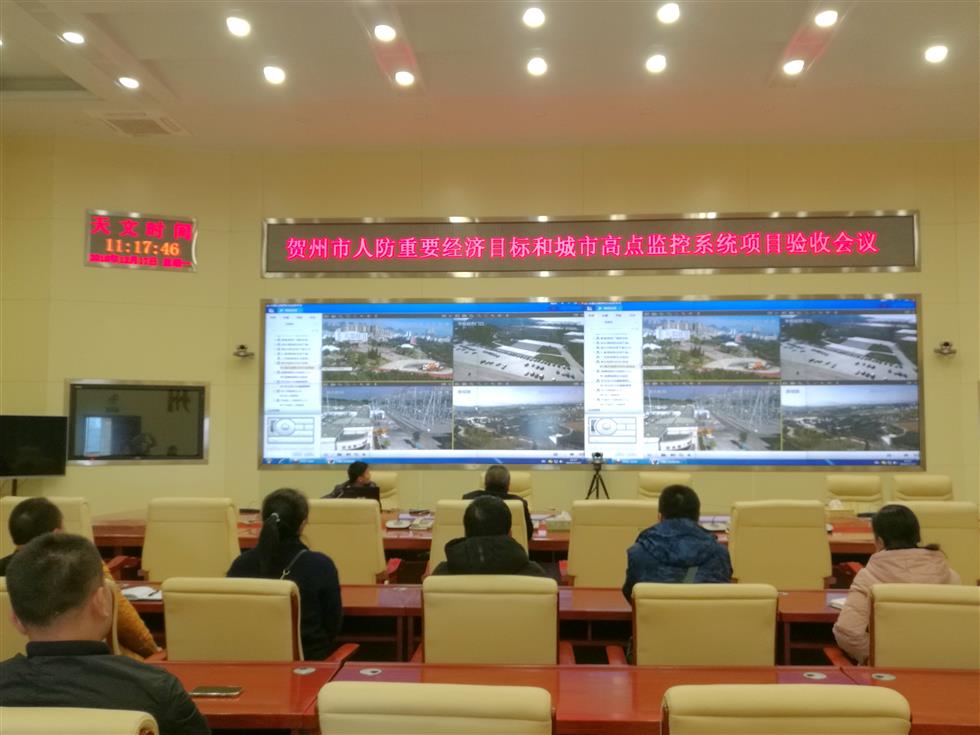 贺州市人防办为贯彻落实国家安全委员会办公室、国家人防办关于《〈人民防空建设“十三五”规划〉实施情况中期评估的通知》和《自治区人防建设“十三五”规划》等文件精神,通过深入研究对接 “十三五”时期人防建设发展的目标任务、重大项目和试点工程后,确定在信息化方面推进信息系统综合集成建设,以加快人防“一网四系统”建设与智慧城市建设有效融合。目前,重要经济目标和城市高点监控系统已经建成,并于2018年12月17日通过验收投入使用。