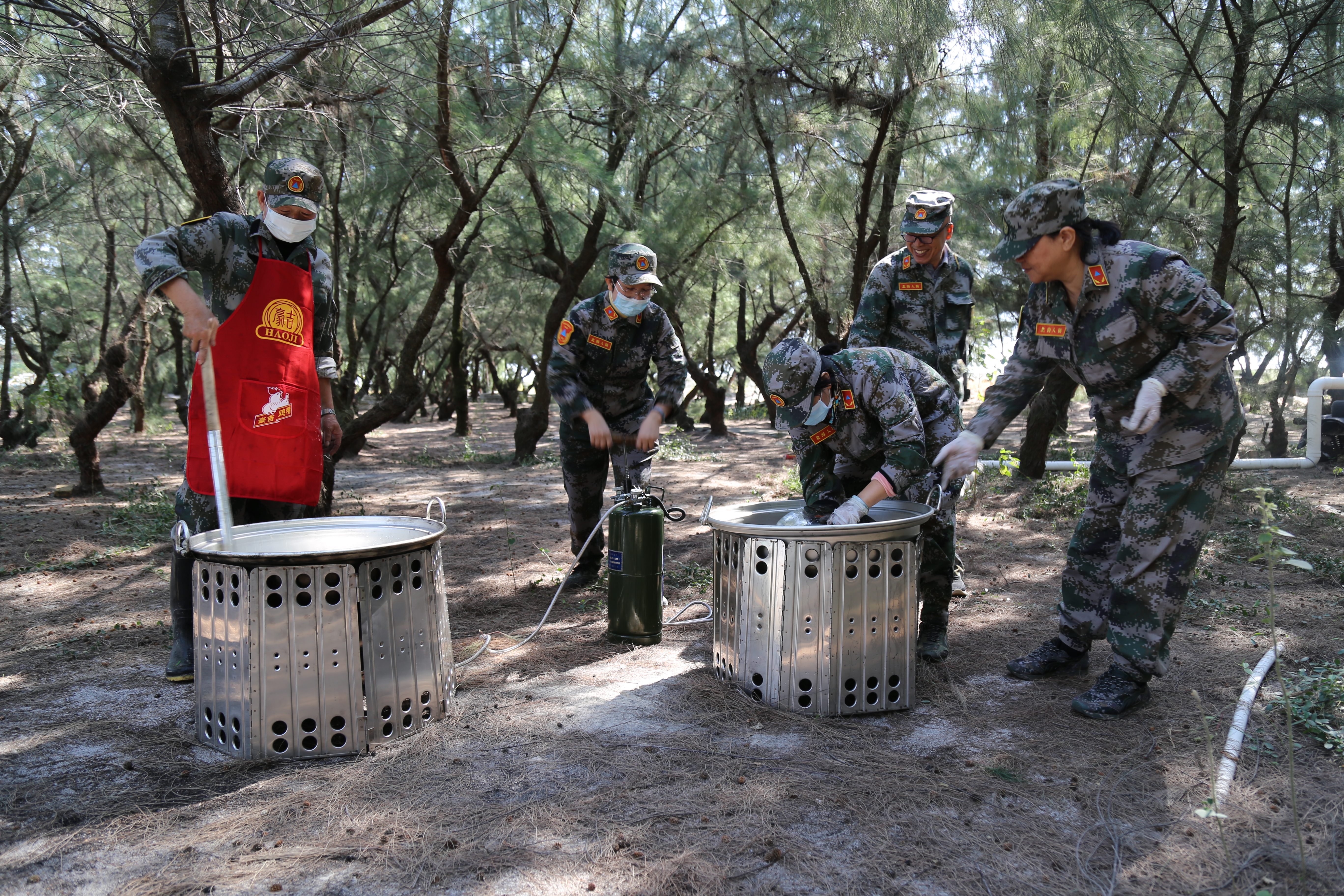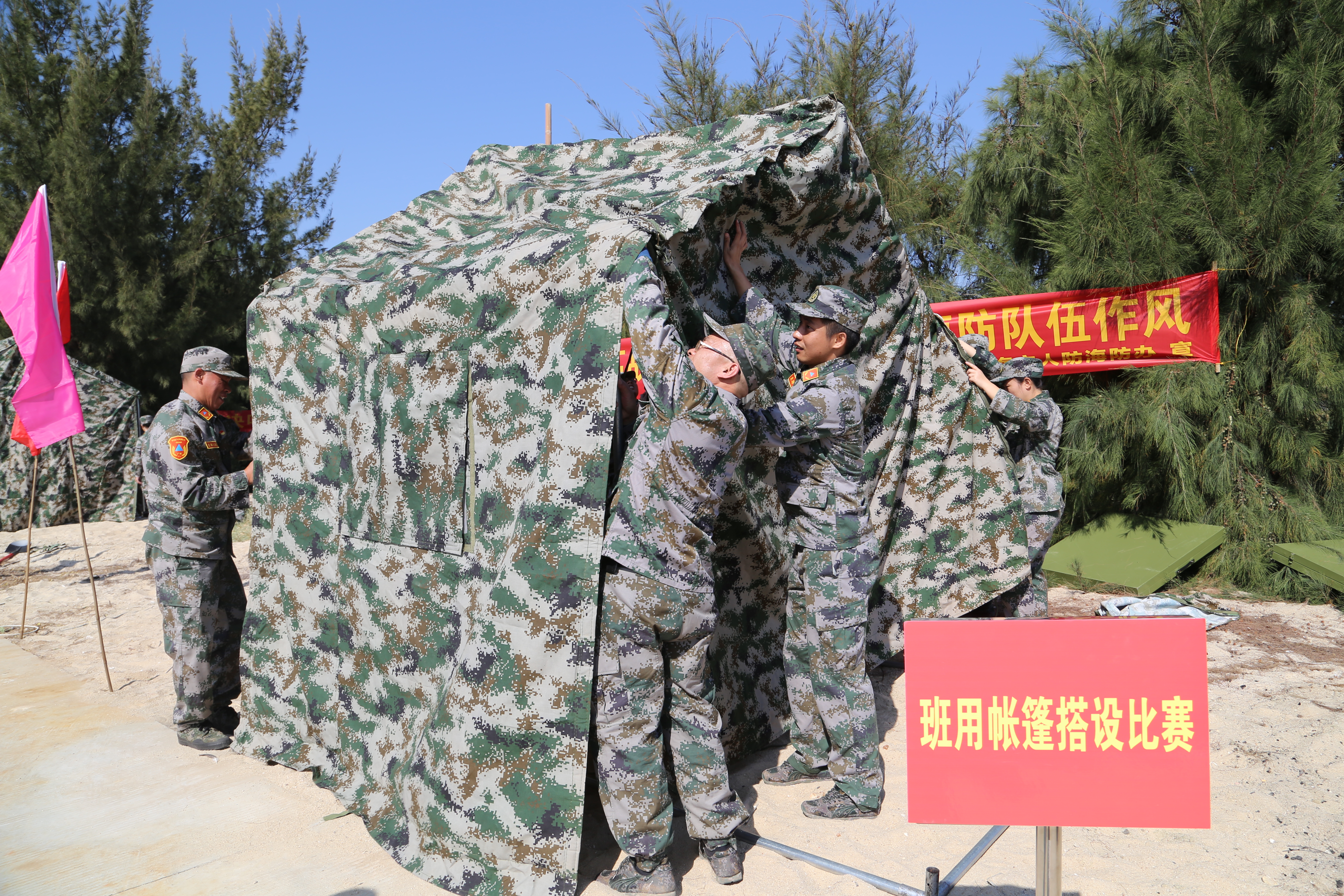 “加油!加油!”白龙港海堤上传来此起彼伏的阵阵欢呼和喝彩。全体人员分成4个小组,各小组长用诙谐幽默的语言,铿锵有力的语气,点燃大家的热情。“负重三公里越野”“百米接力”“帐篷野外快速搭建”“野外生存野炊训练”等准军事化训练比武科目,充分体现了团队配合的重要性,每个人都体验着团结、协作带来的成功喜悦。特别是在“班用帐篷野外搭建”比拼项目中,经过前期训练,队员们已经一定程度掌握了帐篷的主要性能、部件构成、搭建技巧。比武中,各参训小组热情高涨,共同摸索快速搭拆方法,相互紧密协作,更加熟练掌握了野外帐篷搭建技巧。