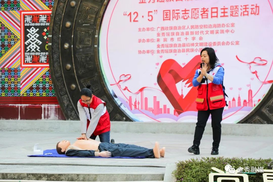 志愿者通过人体模型实操讲解人工呼吸操作。