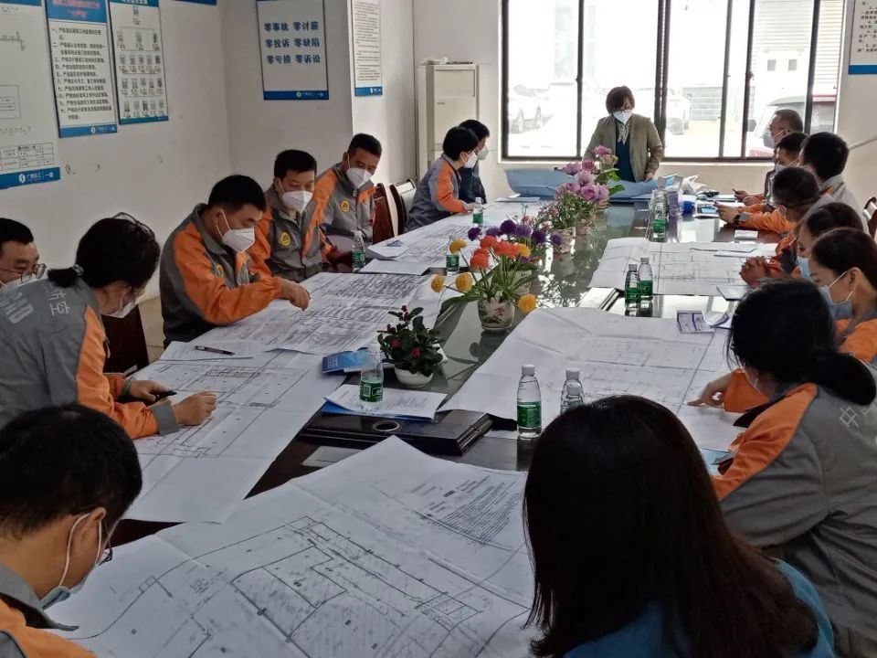 南宁市人防办行政执法人员集中审阅竣工图纸,为现地教学打好基础。