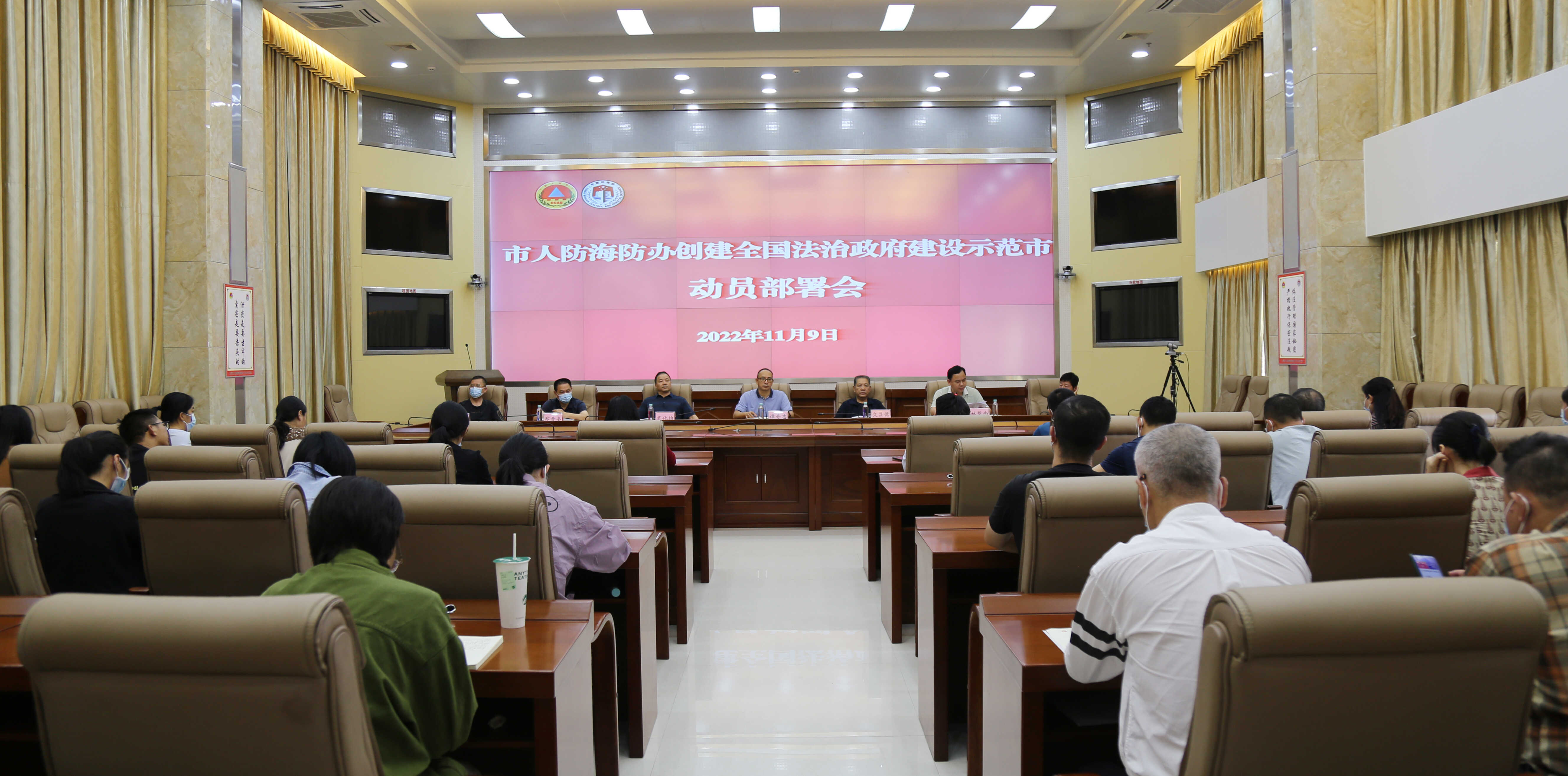 11月9日,北海市人防海防办召开创建全国法治政府建设示范市动员部署会。办党组书记、主任谭奇志主持会议并讲话,全体干部职工参加会议。