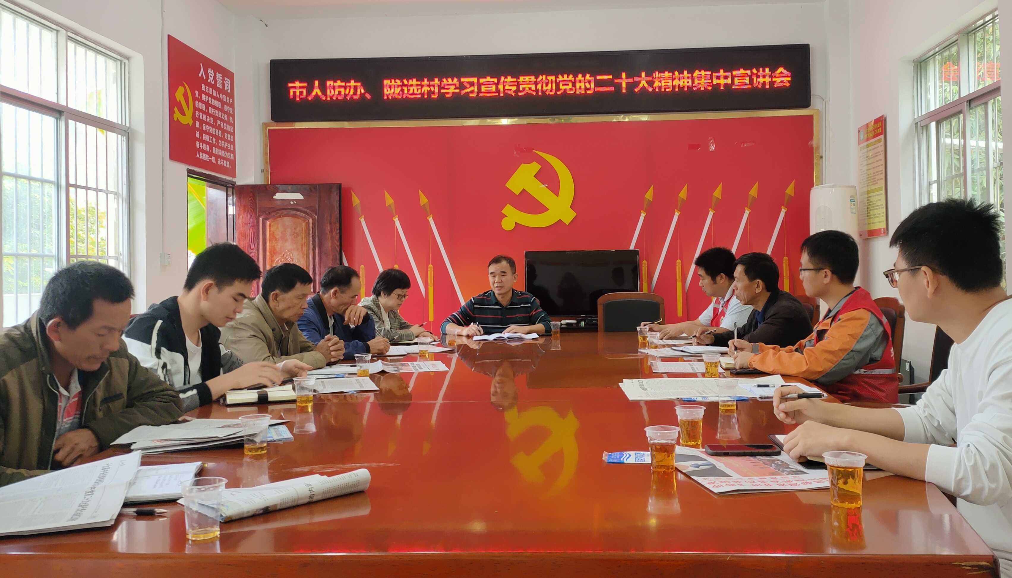 学习党的二十大精神专题宣讲会上,蒋立新用通俗易懂的语言将党的二十大主题、主要成果以及新时代十年的伟大变革和过去五年国家取得的成就进行系统阐释,并围绕文化振兴、人居环境、家风教育等跟老百姓息息相关的内容与村干们进行交流学习。与会人员深受鼓舞,大家纷纷表示,将以党的二十大精神为指引,坚定信心、同心同德,为实现乡村振兴继续埋头苦干。