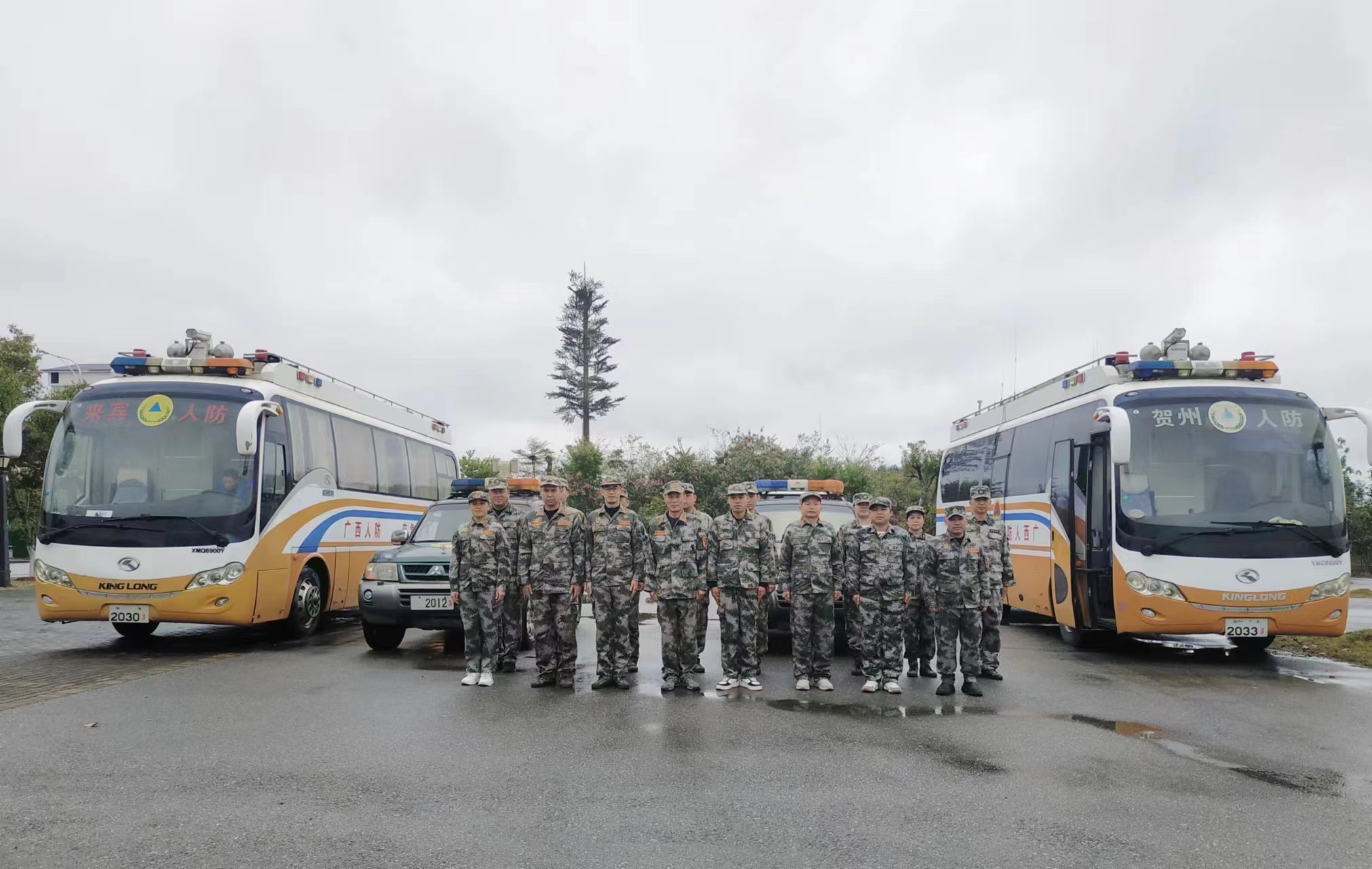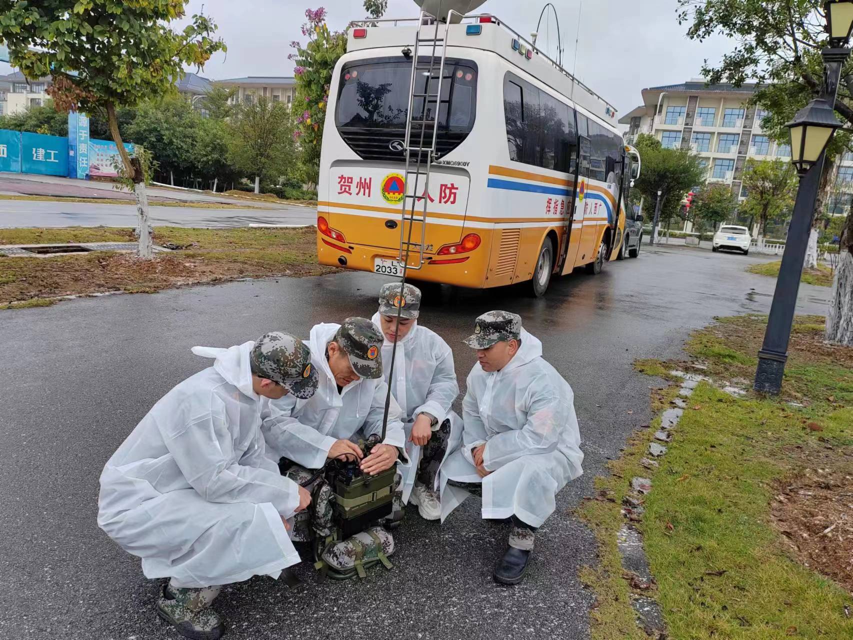 12月19日,贺州市国动办联合来宾市国动办在八步区开展人防应急通信保障联合演练。