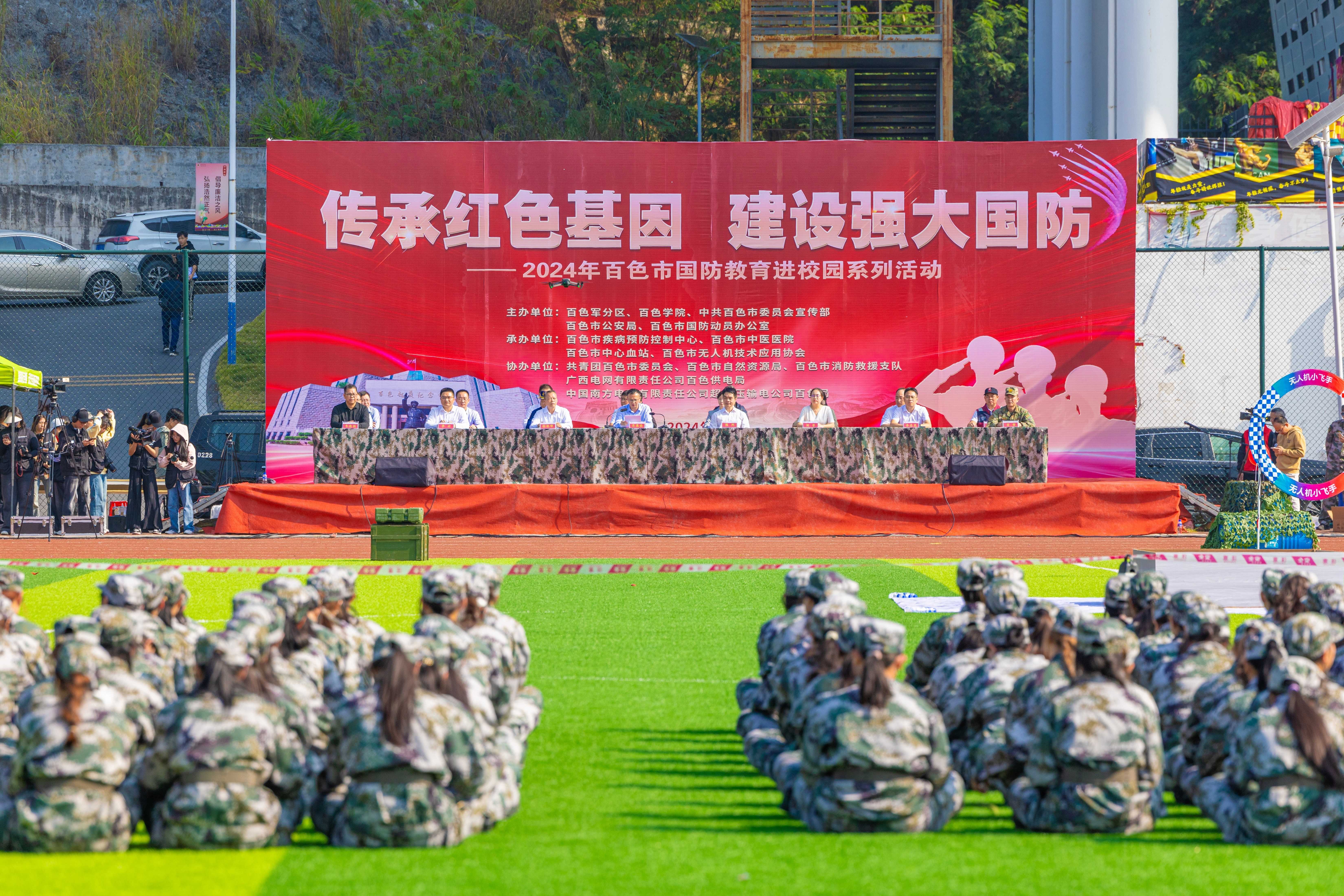 为贯彻落实习近平总书记关于加强全民国防教育重要论述,全面贯彻落实新修订《中华人民共和国国防教育法》,增强大学生国防观念,激发爱国拥军的热情,自觉履行国防义务,11月7日,由百色军分区、百色学院、中共百色市委员会宣传部、百色市公安局、百色市国防动员办公室联合主办,以“传承红色基因 建设强大国防”为主题的国防教育进校园活动,在百色学院澄碧校区顺利举行。