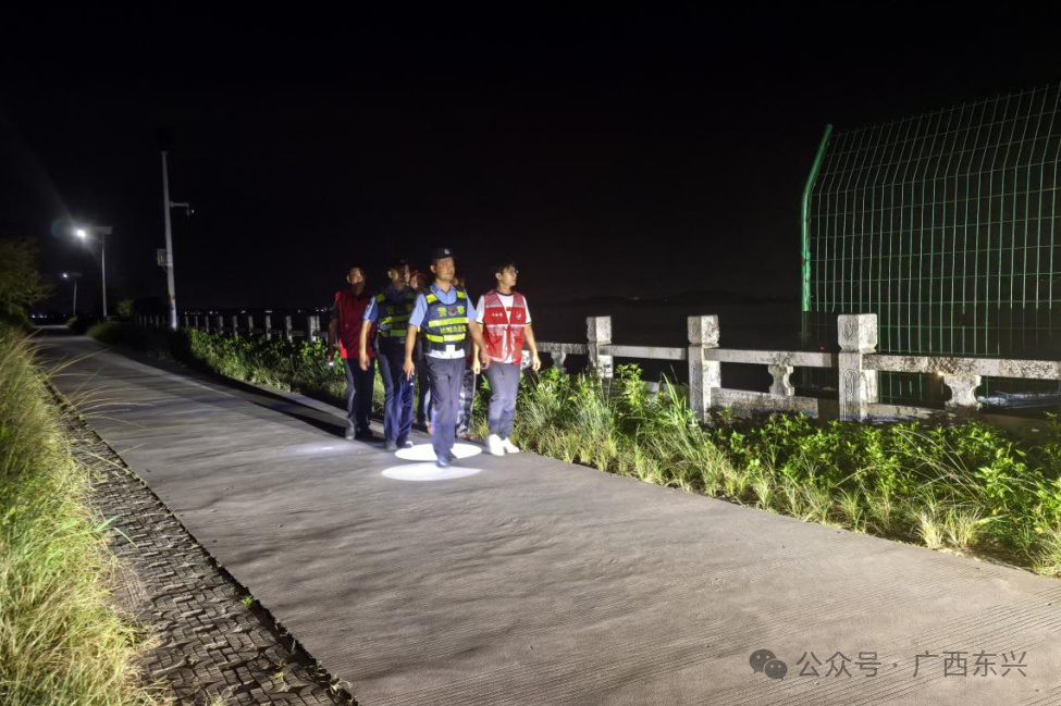 东兴市“党员+干警+边民”护卫队在抵边一线开展夜间巡逻。东兴镇人民政府 供图