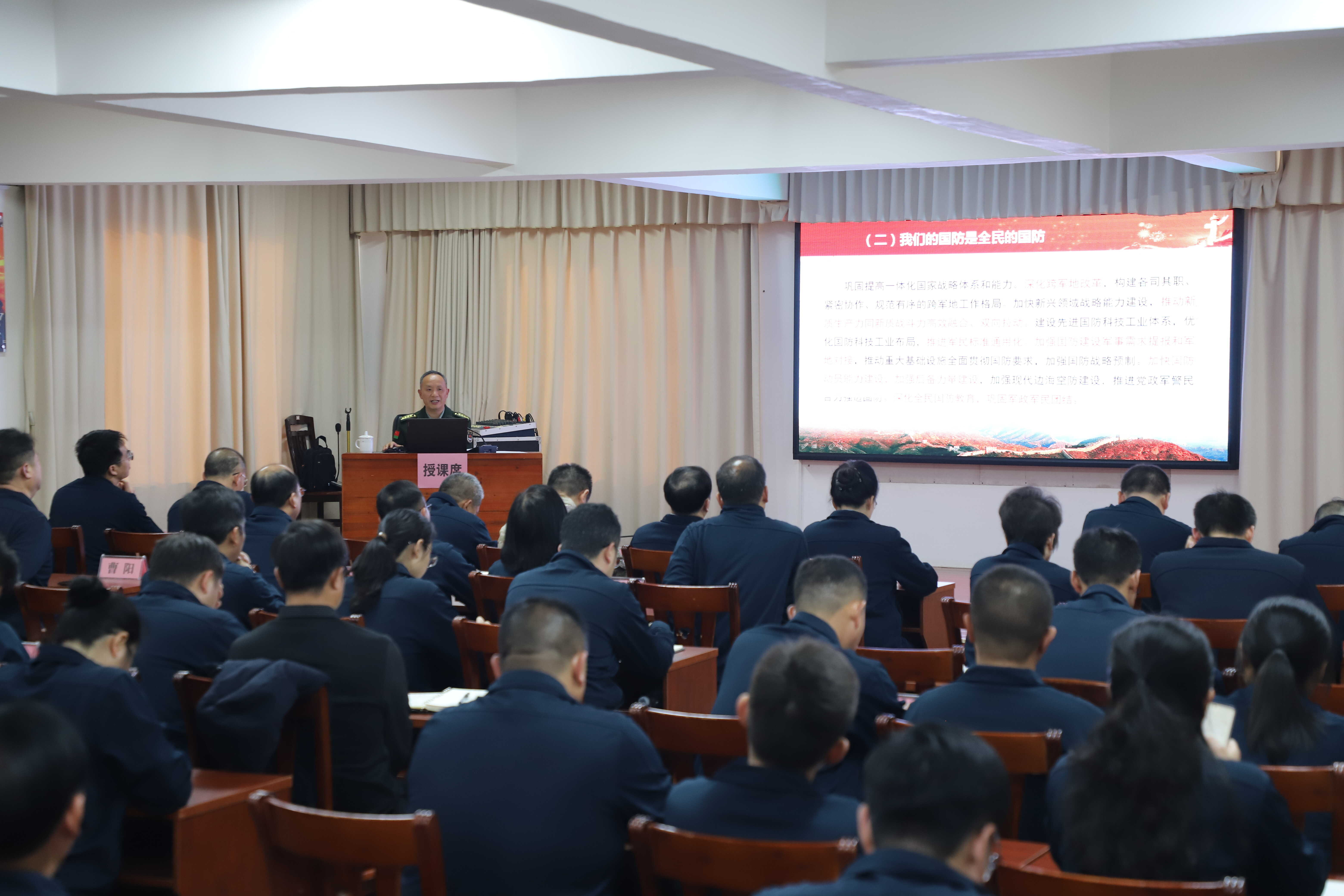 活动特邀特种作战学院教授作题为《把握国际安全形势 积极维护国家安全》的专题授课,深入剖析当前国际安全局势的复杂性与严峻性,并结合实例系统解读了我国维护国家安全的战略举措与能力支撑,帮助大家深刻认清形势,领悟新时代备战打仗的重大意义。