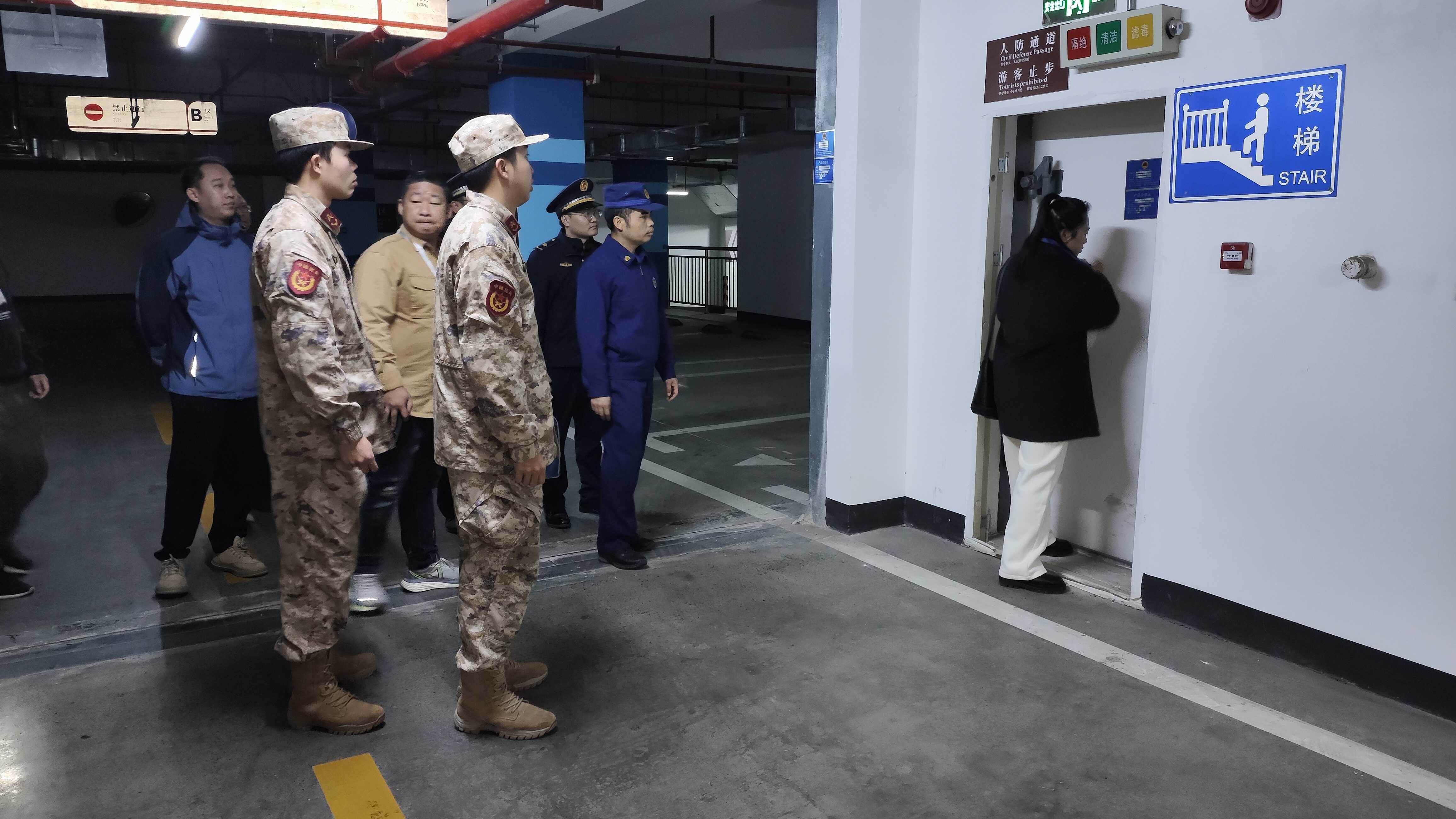 此次联合检查聚焦重点领域、关键环节,构建“多维度排查 + 全链条整改”工作体系。检查组先后深入商业综合体地下人防区域、住宅小区人防地下室、在建人防工程工地等重点场所,开展全方位 “体检”。在消防安全方面,重点检查消防栓、灭火器等设施完好有效性,疏散通道、安全出口是否畅通,电气线路敷设是否规范,排查是否存在违规存放烟花爆竹等易燃易爆物品的行为;在结构安全方面,细致排查人防工程主体结构是否存在裂缝、渗漏,防护密闭墙体、防化设备是否完好,坚决杜绝擅自改变工程用途、穿墙打洞等破坏防护效能的违规行为;在维护管理方面,核查日常巡查制度落实、应急物资储备、值班值守安排等情况,确保节日期间应急响应机制畅通高效。