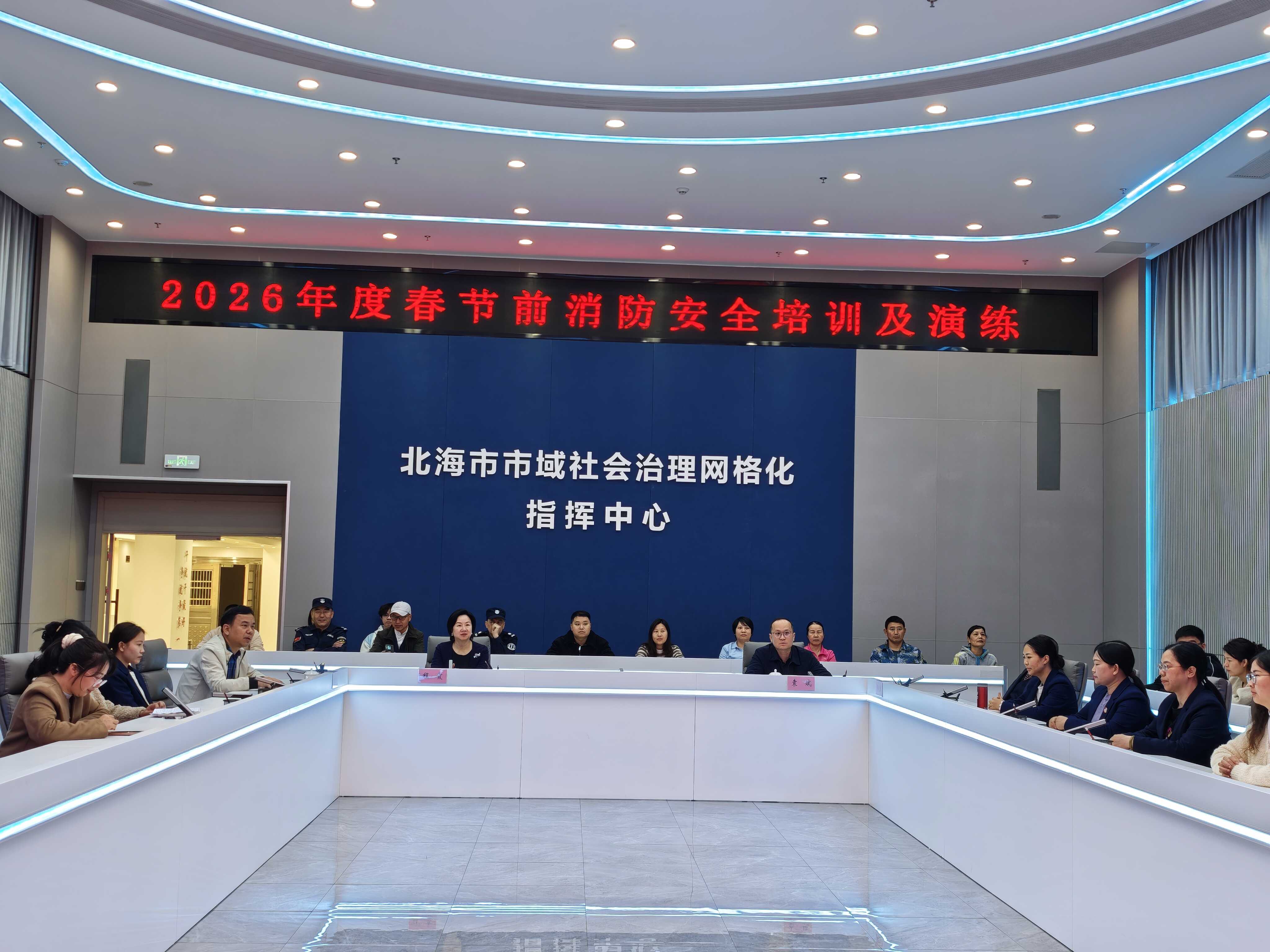 为深入贯彻落实习近平总书记关于安全生产的重要指示精神,切实防范化解重大消防安全风险,提升全体人员消防安全意识与应急处置能力,筑牢春节期间安全防线,2月12日,北海市国动办、市域社会治理网格化指挥中心和物业公司共70人开展2026年度春节前消防安全培训及演练活动。
