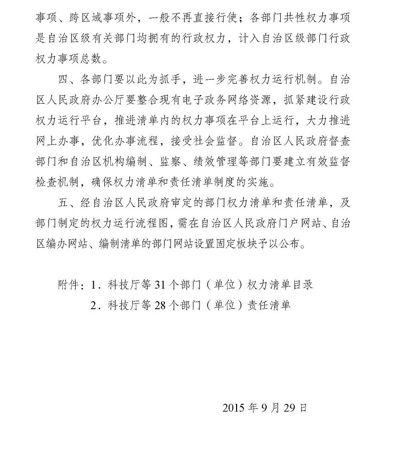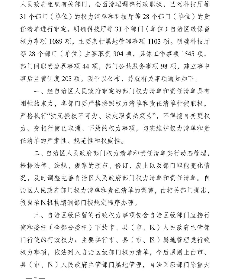 广西壮族自治区人民政府关于公布自治区人民政府部门权力清单和责任清单(第二批)的通知