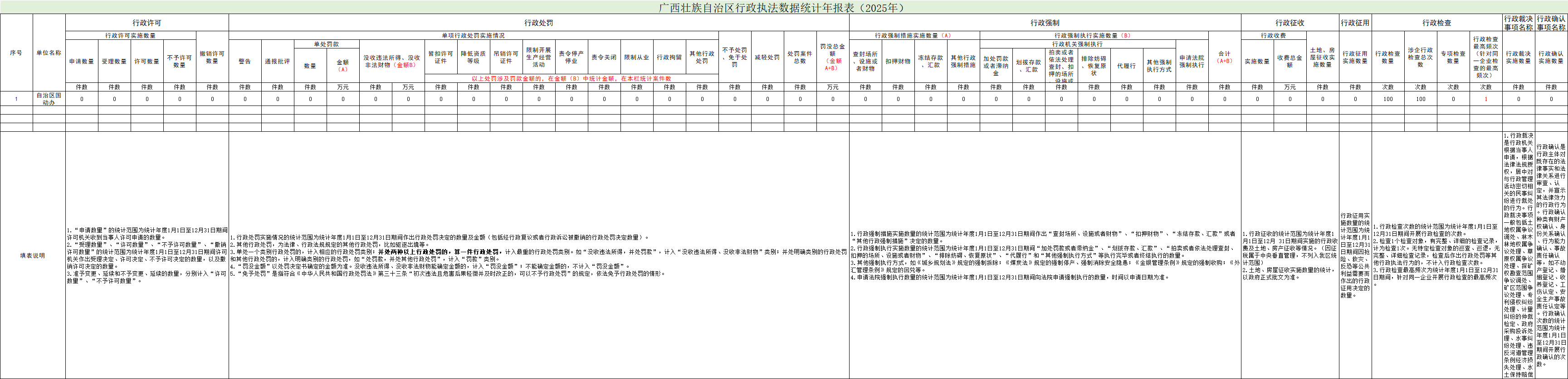 广西壮族自治区行政执法数据统计年报表(2025年)