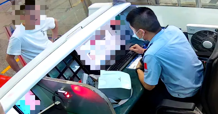 6月24日,南宁出入境边防检查站执勤民警在执行出境边防检查任务时,发现口岸大厅内一名男子形迹可疑,神色慌张,眼神飘忽。
