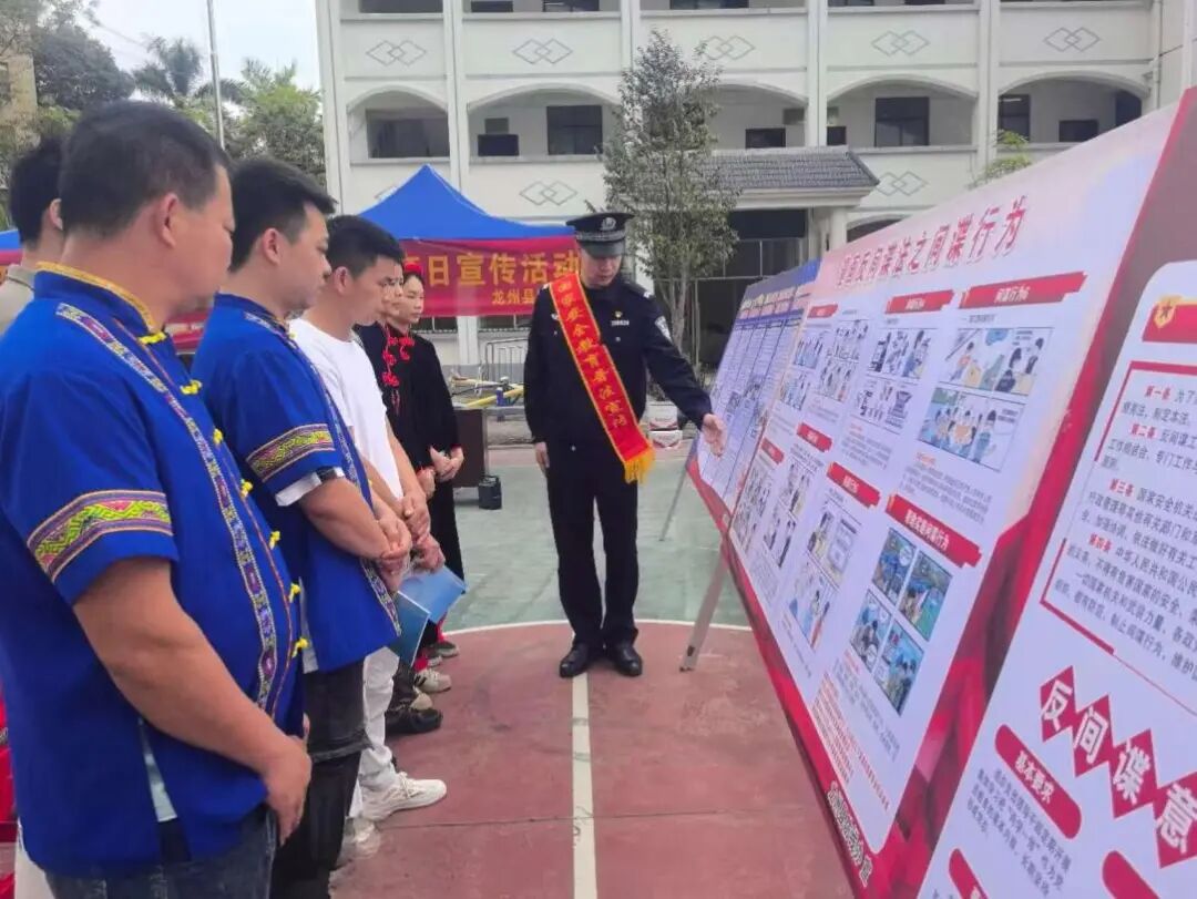在壮族人口占90%以上的边境村屯,龙州县国家安全宣传队创新打造“边民共建、文化共融、安全共治”宣传教育模式,同步构建“壮语举报热线+国家安全瞭望哨”立体化防控体系,设置“三维普法空间”,网格员“移动课堂”走村入户讲解公民权利义务,综治专员“案例工坊”剖析跨境犯罪典型案例,“双语讲台”以辖区内发生的真实案例为蓝本,制作壮语情景短剧,解读《反间谍法》等法律法规,边民老李直呼“这比电视剧管用”。参与宣传活动的边民黄大姐感慨,“我们边境村的人以前总觉得‘跨境走亲戚’是小事,宣传队带着地图说给境外的人捎东西可能犯间谍罪,现在我每次打电话都叮嘱自己的孩子不要乱帮境外人员带东西。”龙州县国家安全法治宣传队向群众进行宣讲全民守边的法治力量