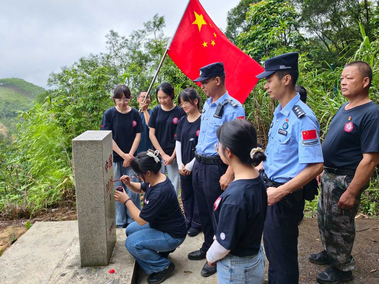 11时许,队伍前往1019-1界碑开展巡边实践。在烈日下,参与者沿边防巡逻道徒步前行,亲身体验戍边民警和护边员日常巡护的艰辛。抵达界碑后,全体人员庄重肃立,聆听界碑历史讲解,并手持朱红油漆,一笔一画为界碑描红。“每一笔都是对国土的深情守护,每一步都是对初心的坚定践行。”彬桥乡青年护边指导员秦新梅在活动中感慨道。