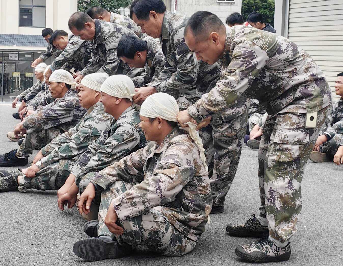 图为护边员队伍学习战场自救互救