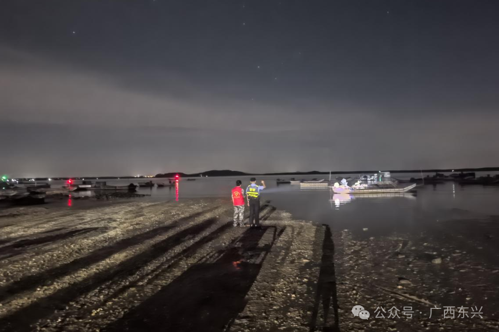 东兴市“党员+干警+边民”护卫队在抵边一线开展夜间巡逻。东兴镇人民政府 供图
