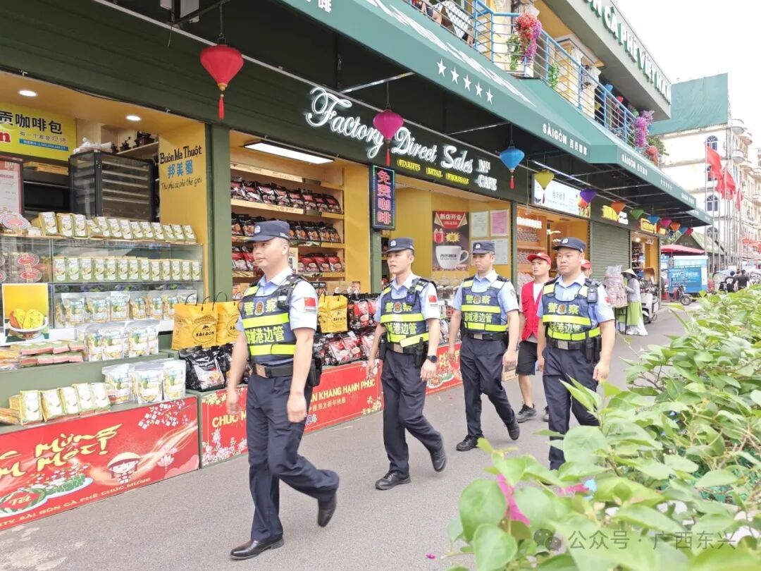 “东兴镇处于边境前沿,推行乡镇‘大党委’机制,镇党政班子成员分组包片挂点,同时组建42支‘党员+干警+边民’护卫队,以及101人的抵边村(社区)巡逻队伍,常态化开展边境巡查和综治宣传。”东兴镇党委委员、副镇长黎文敏介绍,截至目前,该镇已累计开展巡逻672次,成功预警上报涉私可疑情况12次。在全市抵边一线,这样的巡防脚步不停歇,执勤队伍每日在高速路卡点、边境检查站、海岸线各管段等边境卡点固守安全防线。